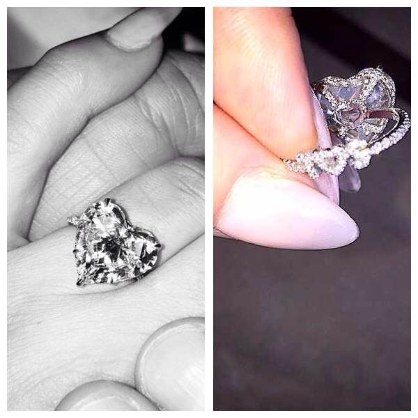 원래 줬던 반지(왼쪽)을 몇년 뒤에 20캐럿으로 업그레이드 시켜준 >칸예<