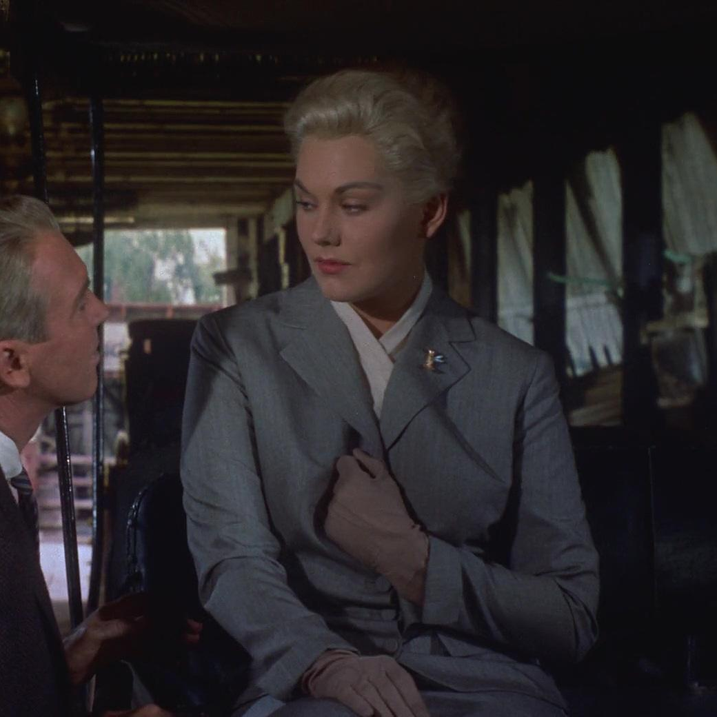 하지만 당시에 킴 노박은 히치콕이 주장한 회색 슈트+ 블랙 슈즈가 왜 중요한지 이해를 못했고 오히려 싫어했다고 함