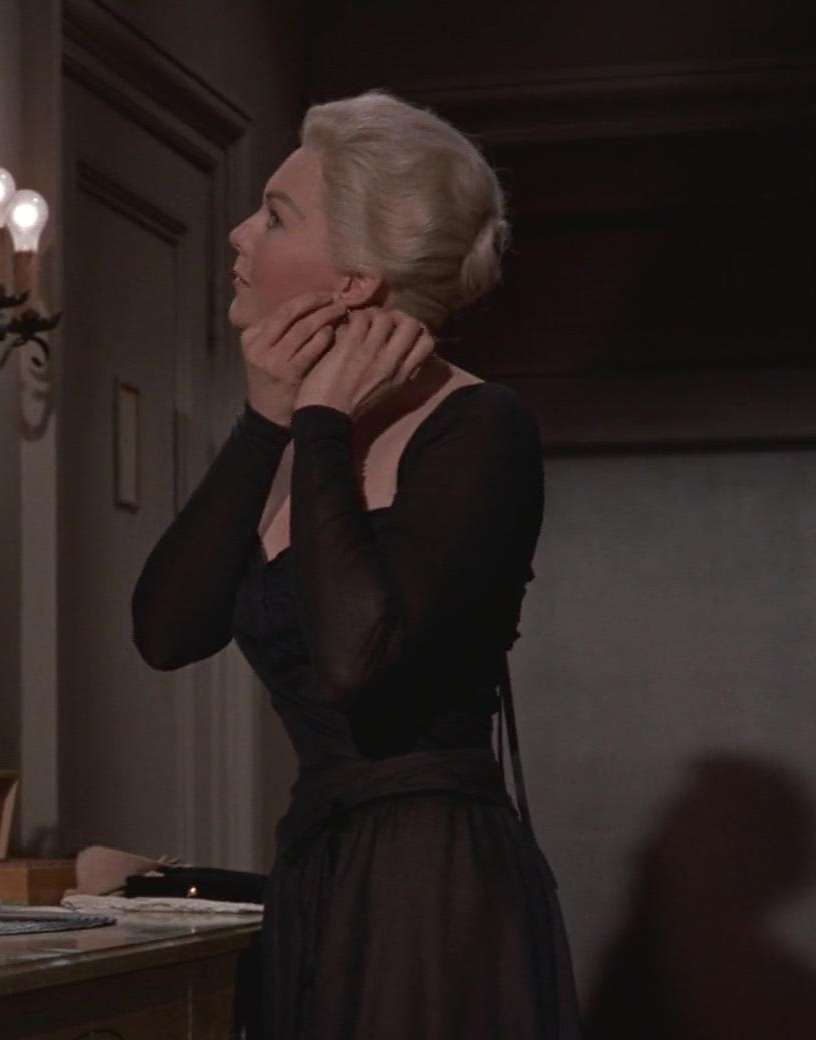 매들린(킴 노박) 첫 등장의 블랙 실크 드레스