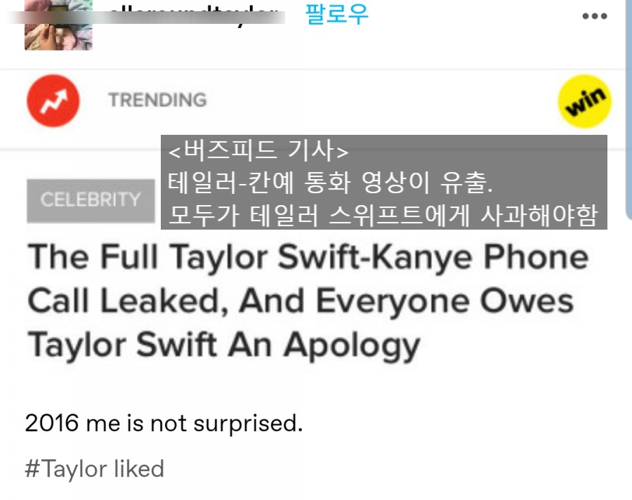 테일러 스위프트&칸예 웨스트 통화 원본 유출 정리