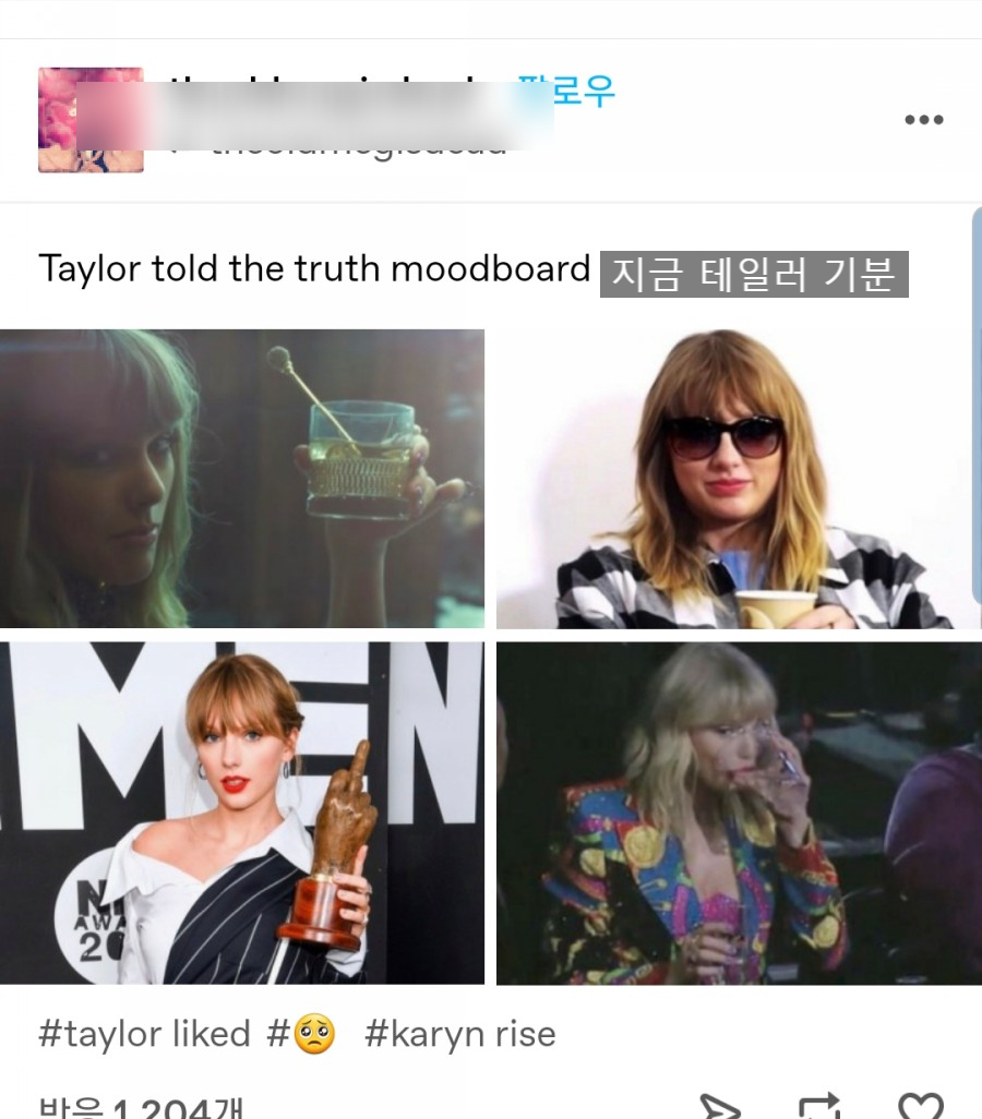 본인 텀블러 계정으로 좋아요 누른 포스팅들 (팬 계정은 모자이크 처리함)