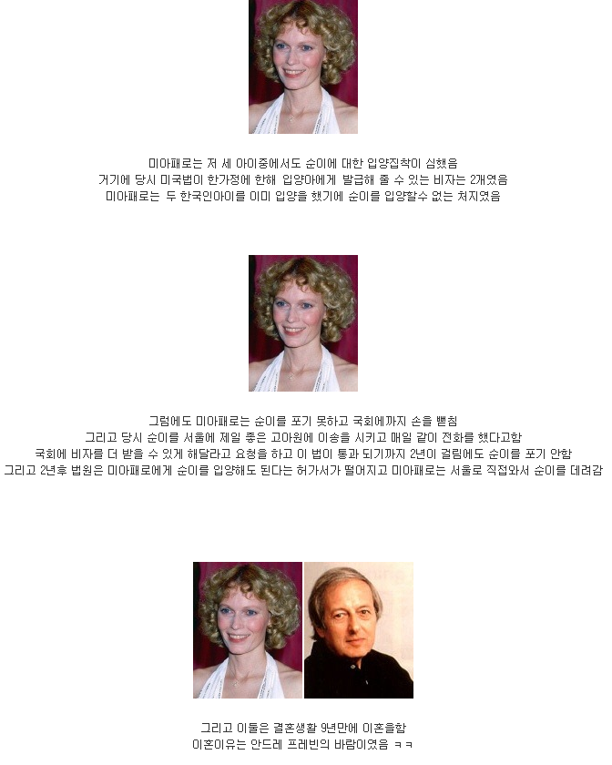 1978년, 한국인 고아였던 순이 프레빈 Soon Yi 입양