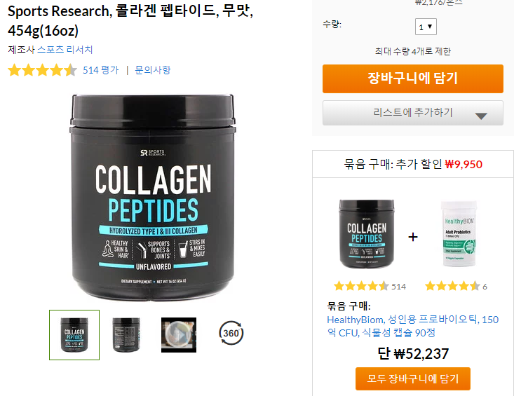 아래 Sports Research의 콜라겐 파우더