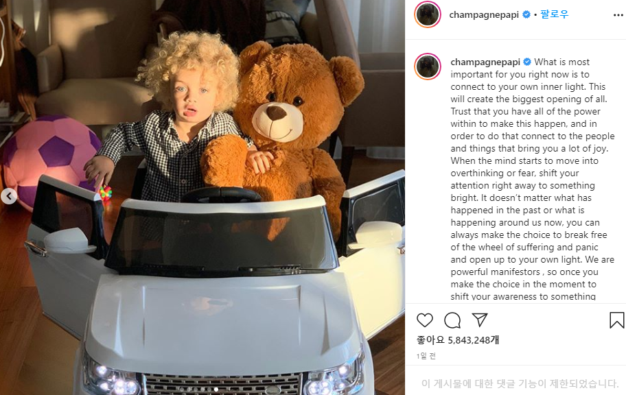 그 예를 볼 수 있는 것이 최근에 공개된 드레이크의 아들 아도니스