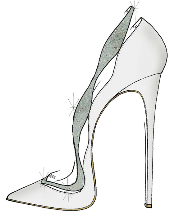 박물관에서 빌려온 1890년 구두 모양을 토대로 완전한 하나의 스와로브스키 크리스탈를 만들어냈다고 함