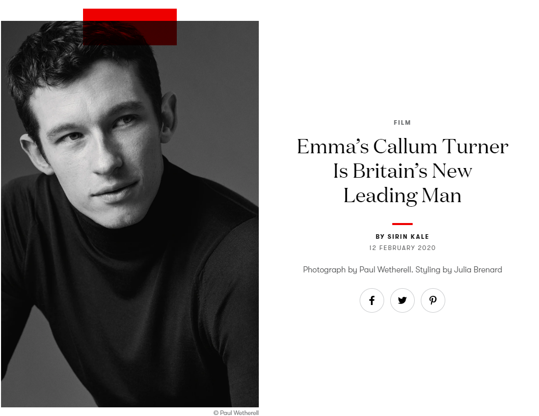 칼럼 터너는 올해 초 개봉했던 어텀 드 와일드 감독 <엠마>에 출연했고요