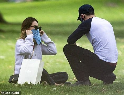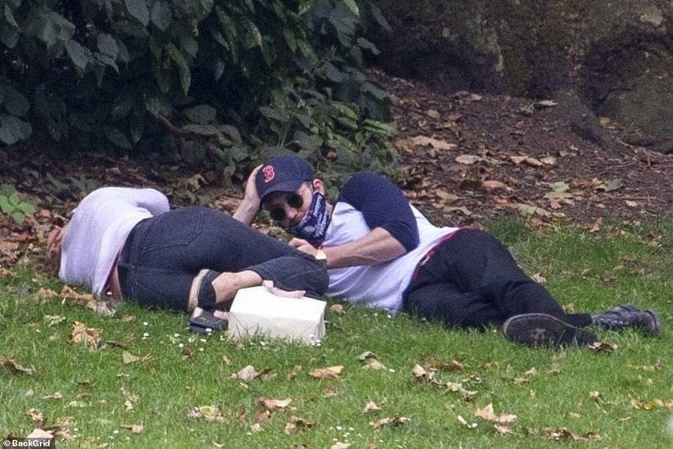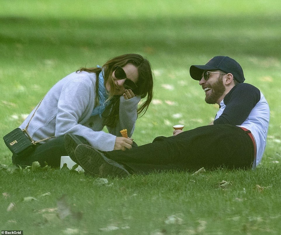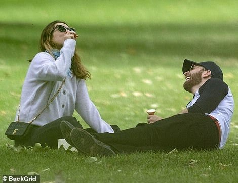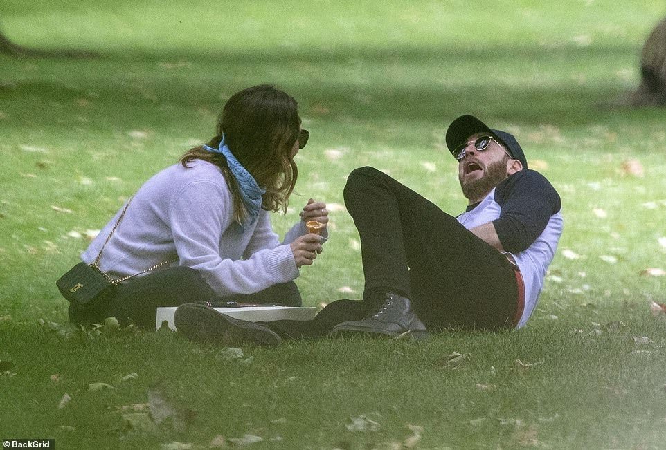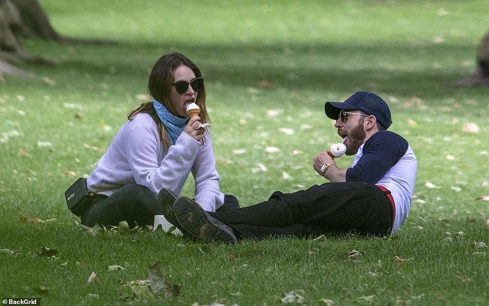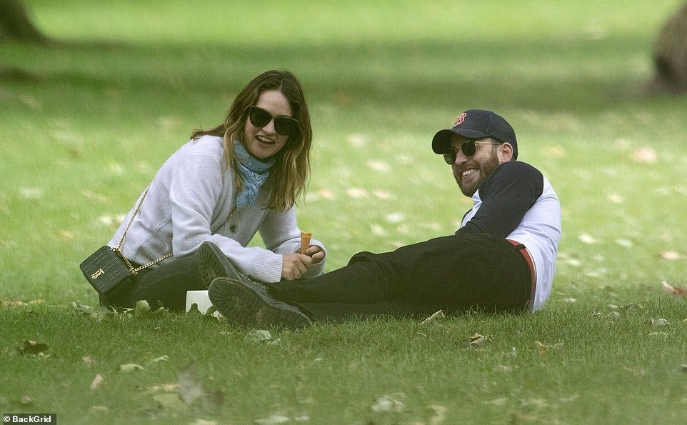 불과 몇 시간 전 찍힌 런던, 어느 공원에서의 릴리 제임스와 크리스 에반스