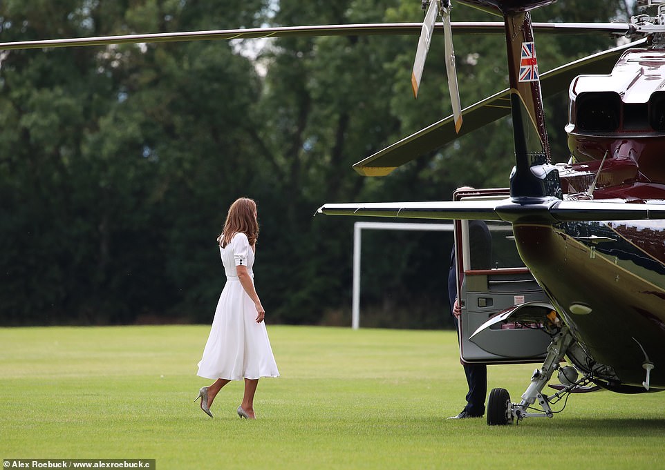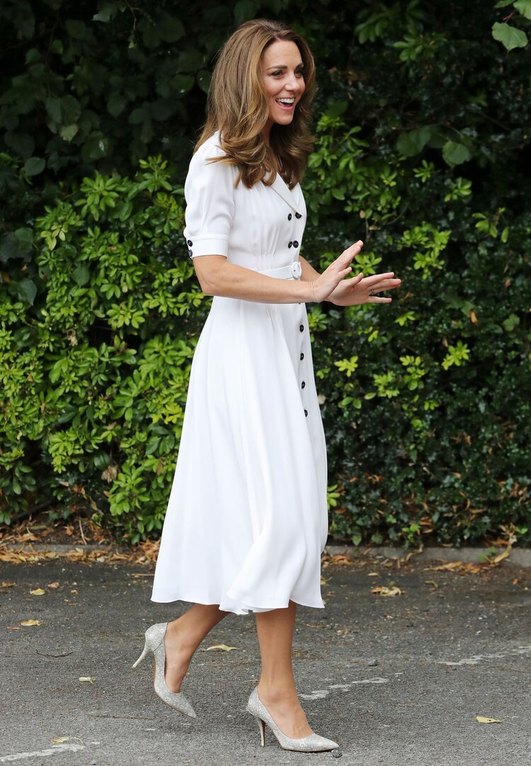 이 날의 흰색의 벨트 미디 원피스는 런던 브랜드 수잔나(Suzannah )의 £1,850짜리 드레스로