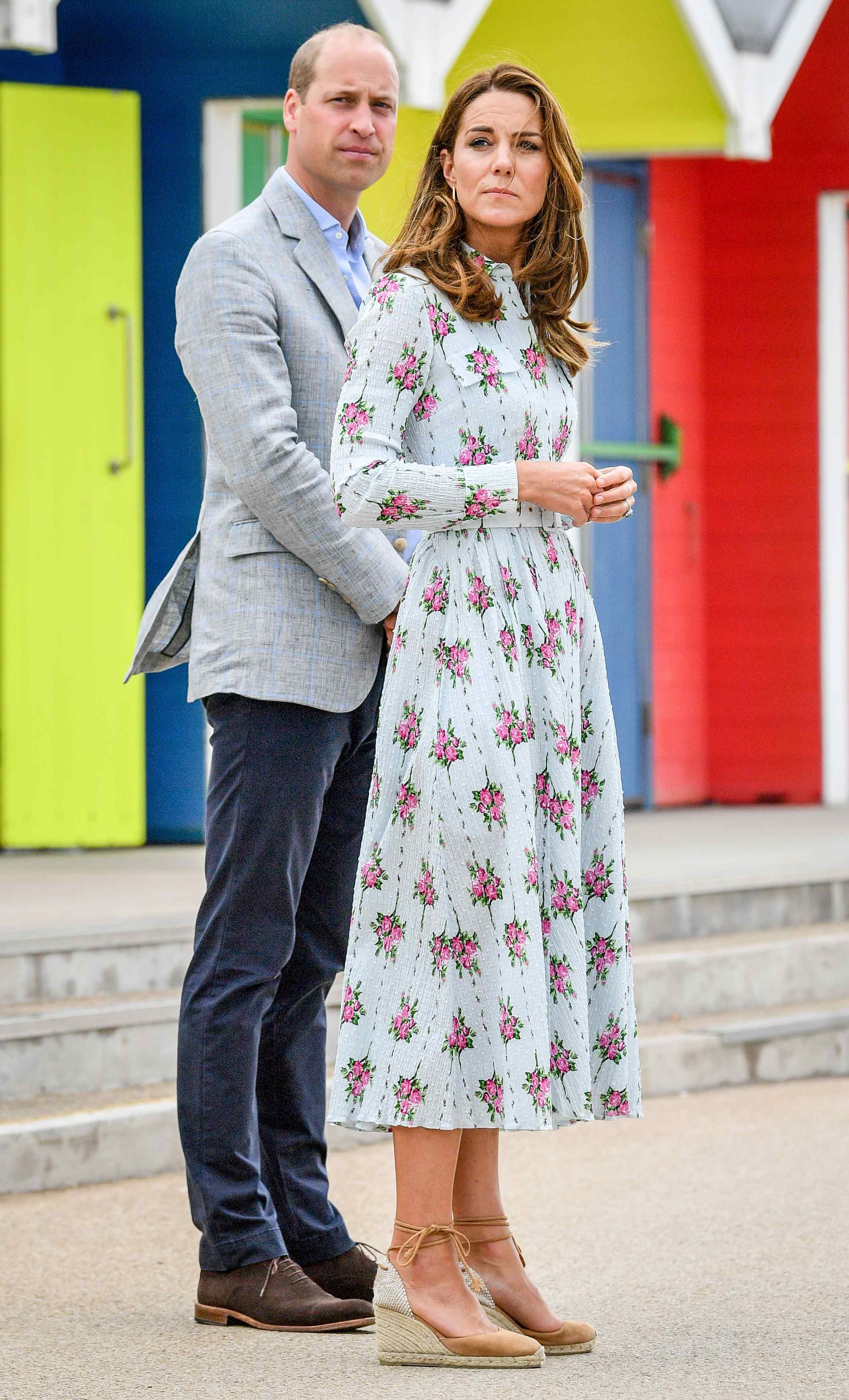 분홍색 장미가 그려져 있는 벨트 미디 드레스는 케이트 미들턴의 최애 브랜드 에밀리아 윅스테드(Emilia Wickstead) 제품