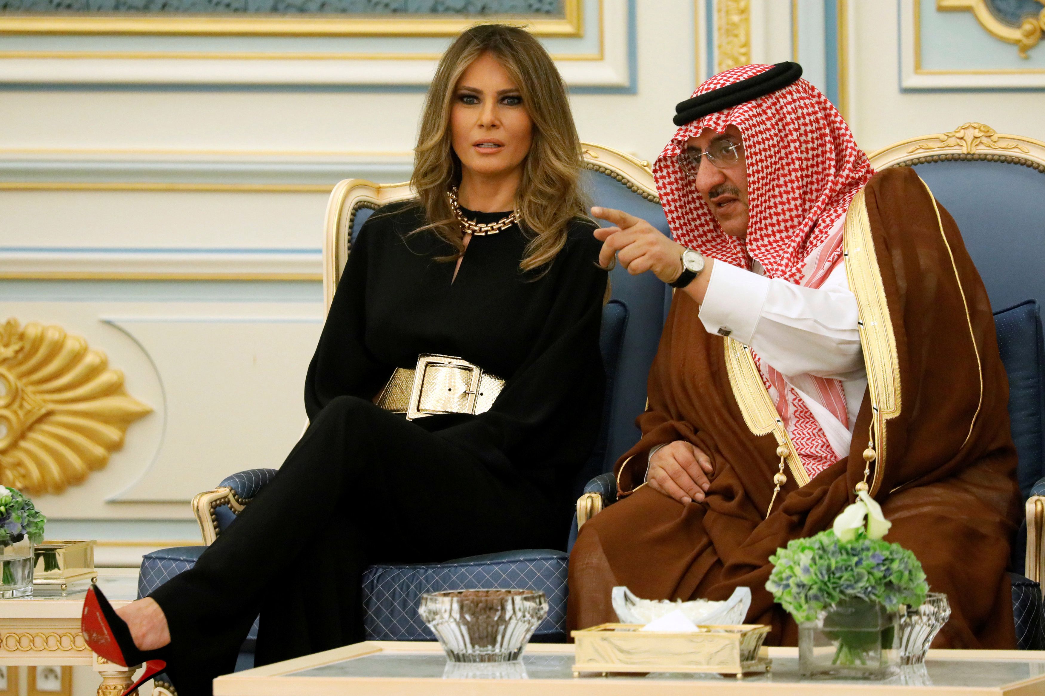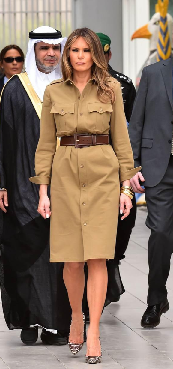 하지만 멜라니아는 사우디아라비아 순방 중에 다리가 드러나는 벨트 셔츠 드레스를 입어 더 논란이 되기도 했네요