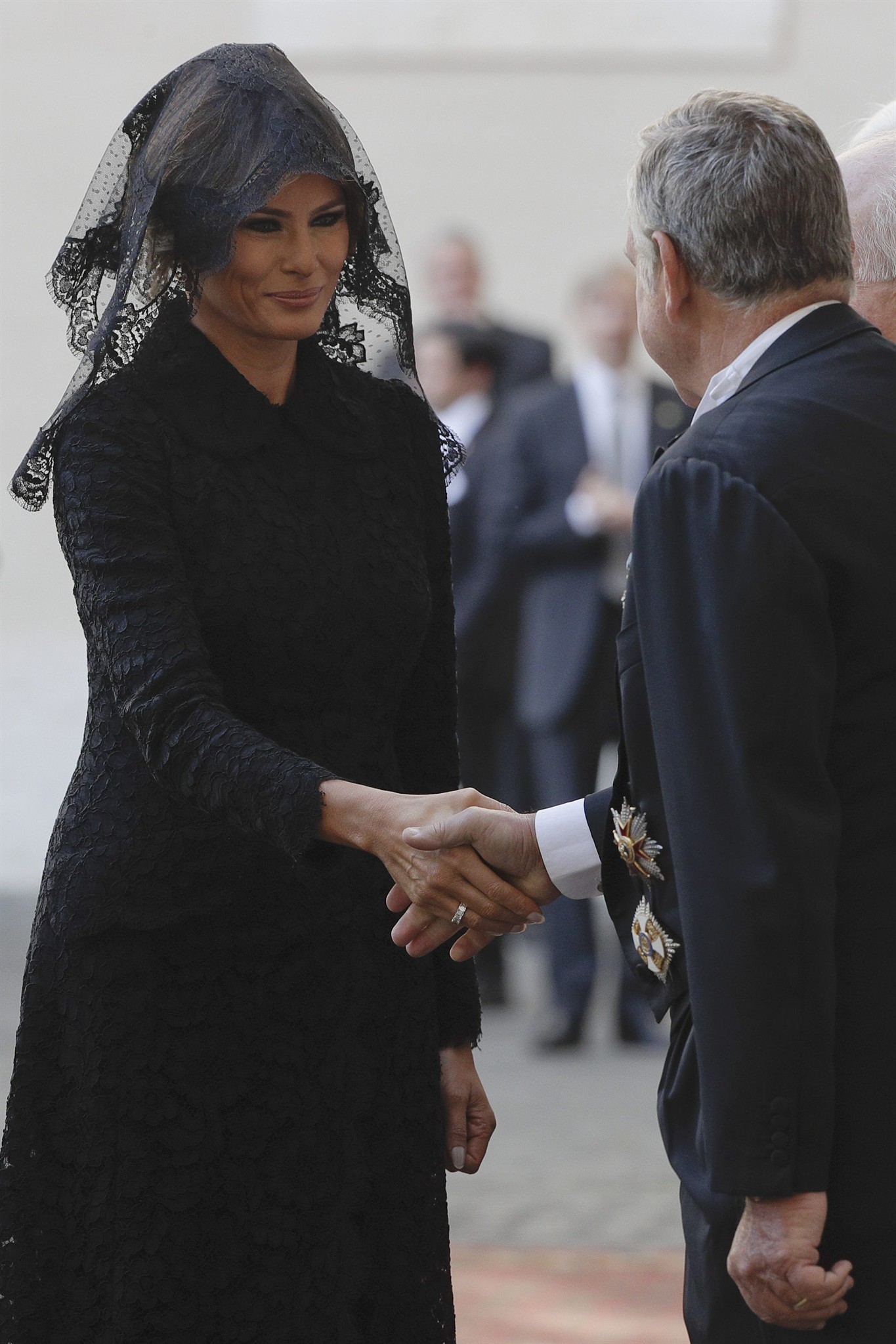 하지만 원래 교황을 직접 만날 때에는 여성의 경우 소매가 긴 검은색 옷과 함께 머리카락을 가리는 것이 원칙이라서 멜라니아가 알맞게 착용한 것이기는 해요