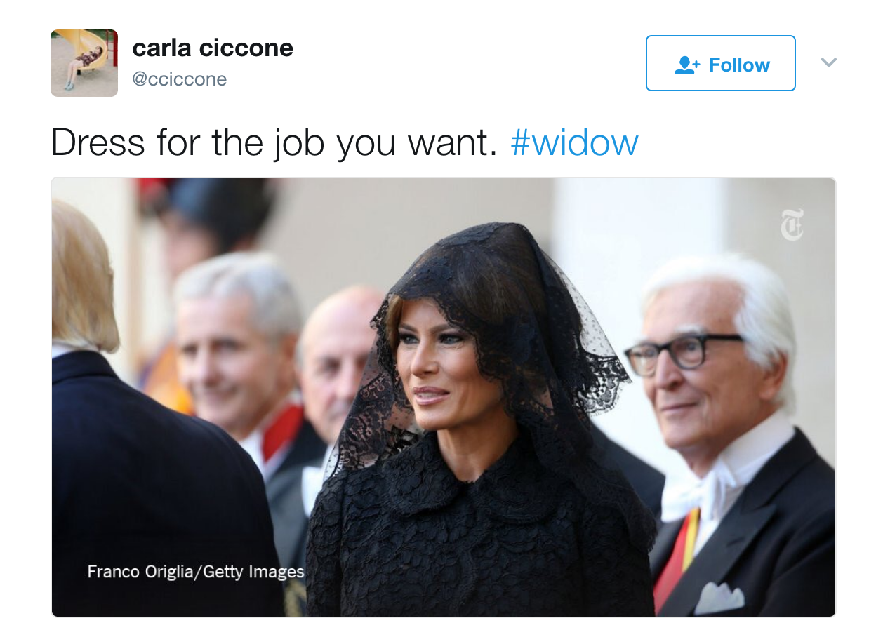 다이어트 프라다와 같은 인스타그램 계정은 찬조 연설한 멜라니아 트럼프의 스타일을 히틀러, 무솔리니 등과 같은 인물들과 비교하며 혹독한 혹평을 보냈어요