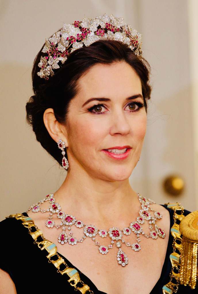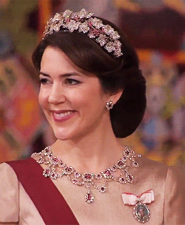 현재 이 대니쉬 루비 티아라는 호주에서 온 메리 도날드슨이 유럽 왕실에 처음 데뷔했을 때 착용한 것을 시작으로 메리 왕세자비를 상징하는 티아라로 자리매김하고 있어요. 개인적으로 유럽 왕실 티아라 중 TOP 3에 들어간다고 생각!