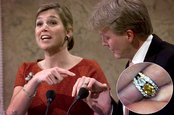 막시마 소레기에타가 네덜랜드의 왕세자 빌럼 알렉산더르와 결혼해 House of Orange-Nassau와 입성할 당시 받은 오렌지 색상의 다이아몬드가 크게 중간에 위치한 약혼 반지