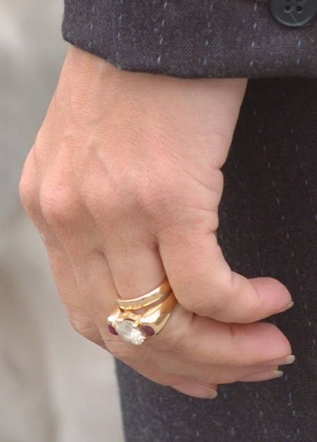 덴마크 국가를 상징하는 약혼반지는 2003년, 약혼할 당시 받은 것이기 때문에 현재까지 왕세자빈 마리는 웨딩 밴드와 함께, 다른 다이아몬드를 계속 추가 및 변경하면서 착용하고 있네요. 여자가 왕실에 입성하는 것인데도 불구하고 의외로 역사적인 의미는 전혀 없는 약혼반지