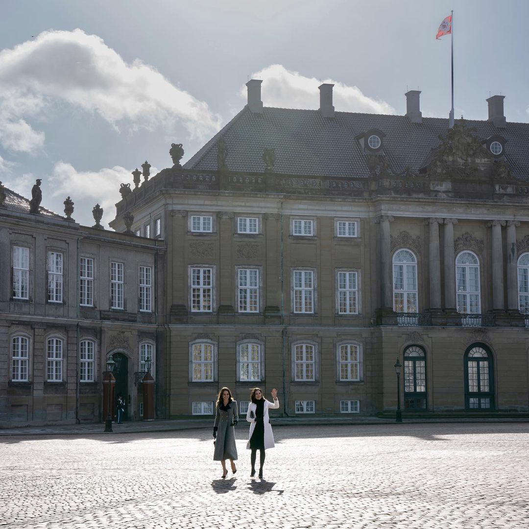 덴마크의 마르그레테 2세 여왕이 거주하는 덴마크 왕실의 거주지 아말리엔보르 성(Amalienborg) 밖에서 로열 애스콧(Royal Ascot) 이후 6년 만에 보는 덴마크 메리 왕세자비와 함께..