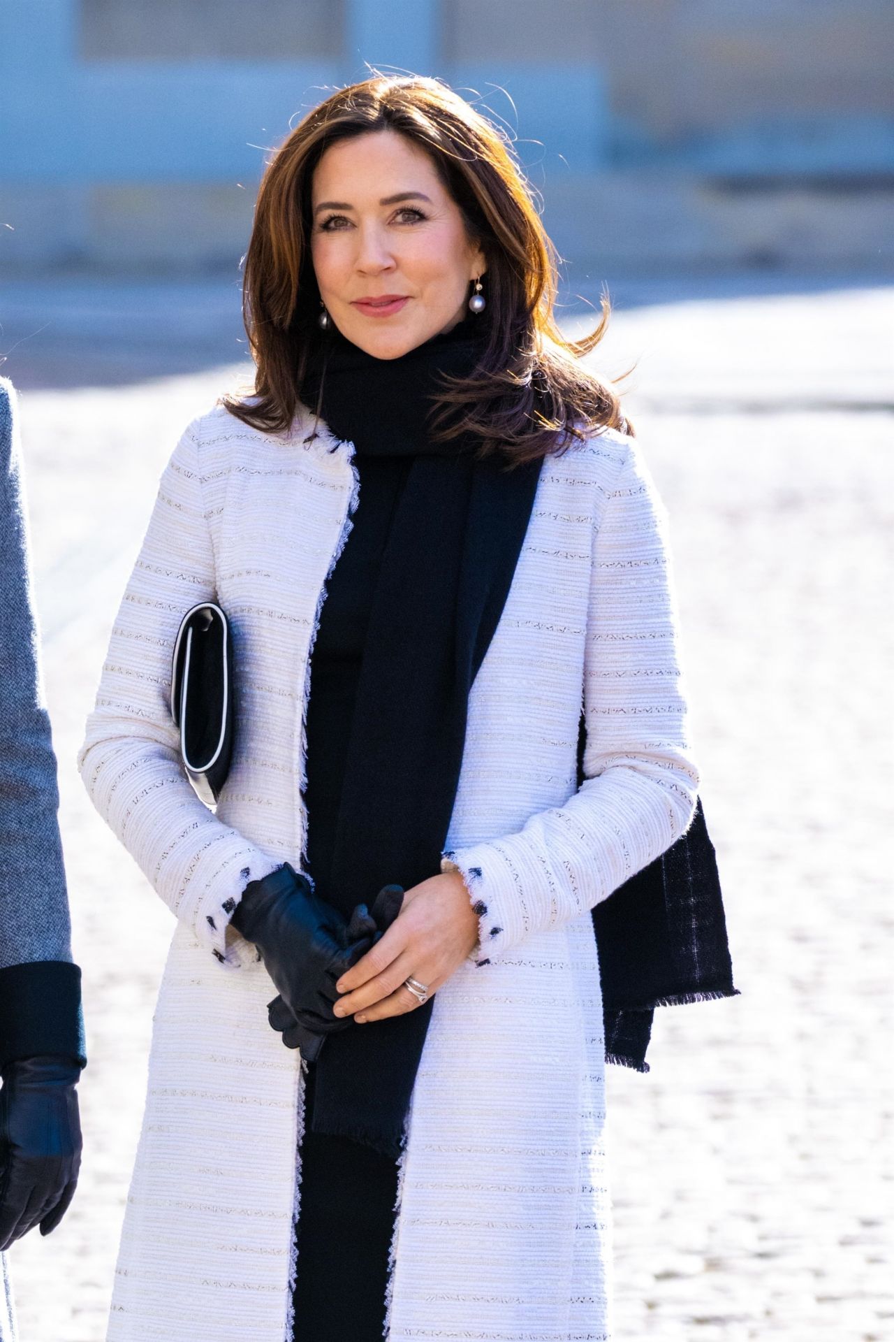 당연한 것처럼 캐서린 워커 커스튬 코트를 입은 케이트 미들턴과 달리 샤넬(..?) 스타일의 순백색 트위트 코트와 함께 케이트 미들턴과 같이 진주 귀걸이를 매치. 물론 덴마크 주얼리 브랜드의 제품으로 케이트 미들턴이 착용한 진주 귀걸이보다 훨씬 고가인 Dulong Fine Jeweller 진주 귀걸이 제품