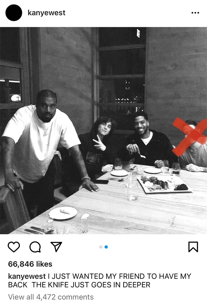 위와 같은 트레버 노아를 향한 칸예의 혐오적 발언을 이유로 혐오와 폭력적인 포스팅을 금지하는 정책을 고수 중인 인스타그램 모회사 메타(Meta)는 칸예의 인스타그램를 24시간 포스팅, 댓글 달기, DM 등 계정 정지시켰습니다.