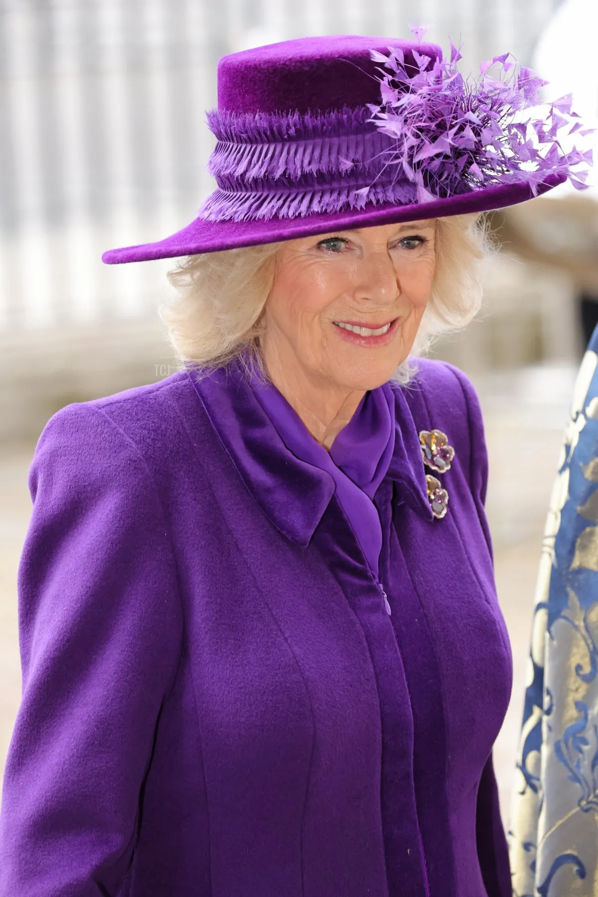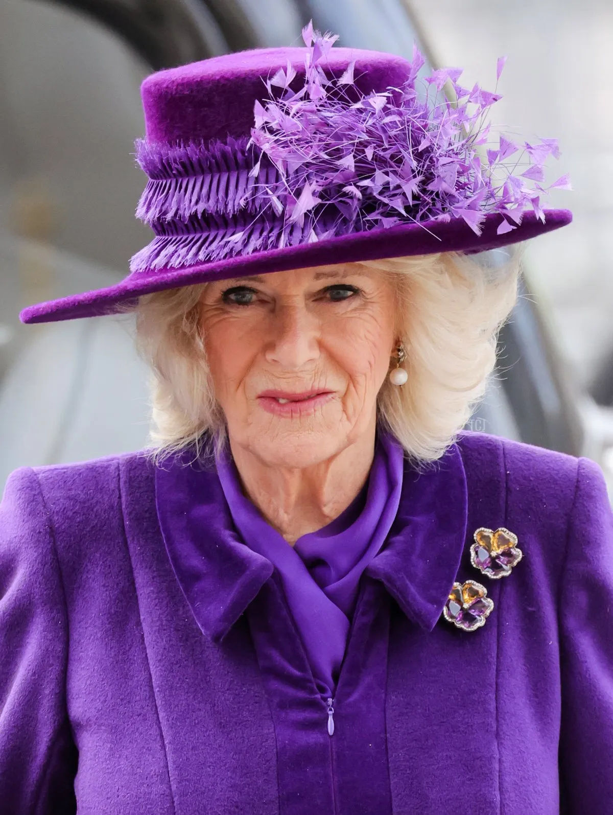 사실 케이트 미들턴 주얼리보다 카밀라 파커 보울스 주얼리가 훨씬 비싸고 보는 재미라도 있기 때문에 추가➕ 보라색으로 모자와 코트를 맞춘 카밀라 파커 보울스는 보라색과 호박색 보석이 박힌 팬지 브로치를.
