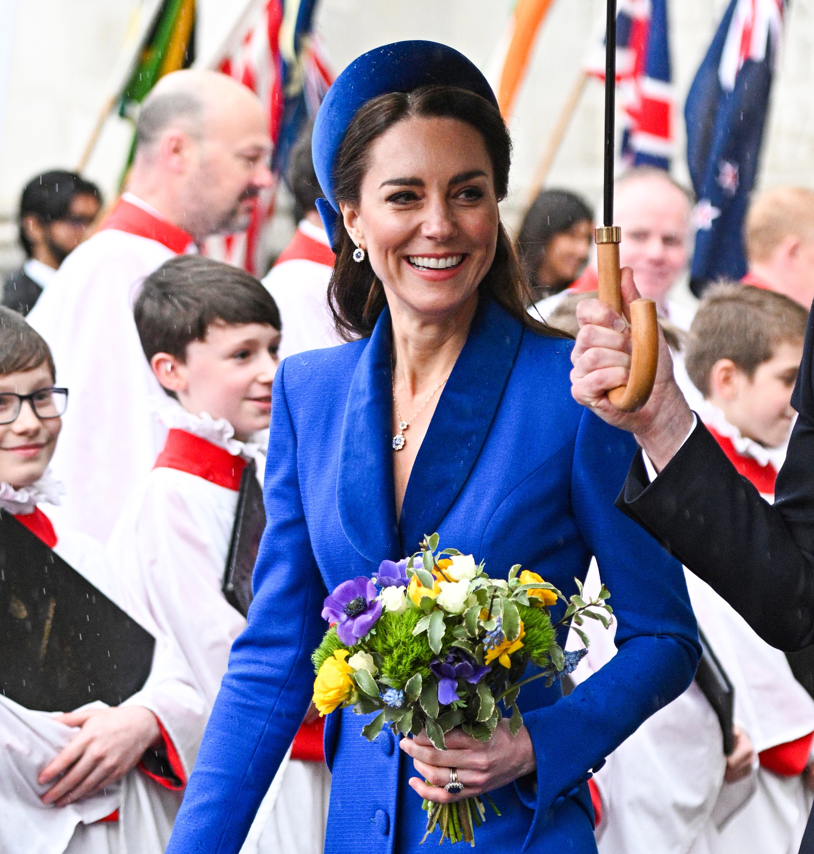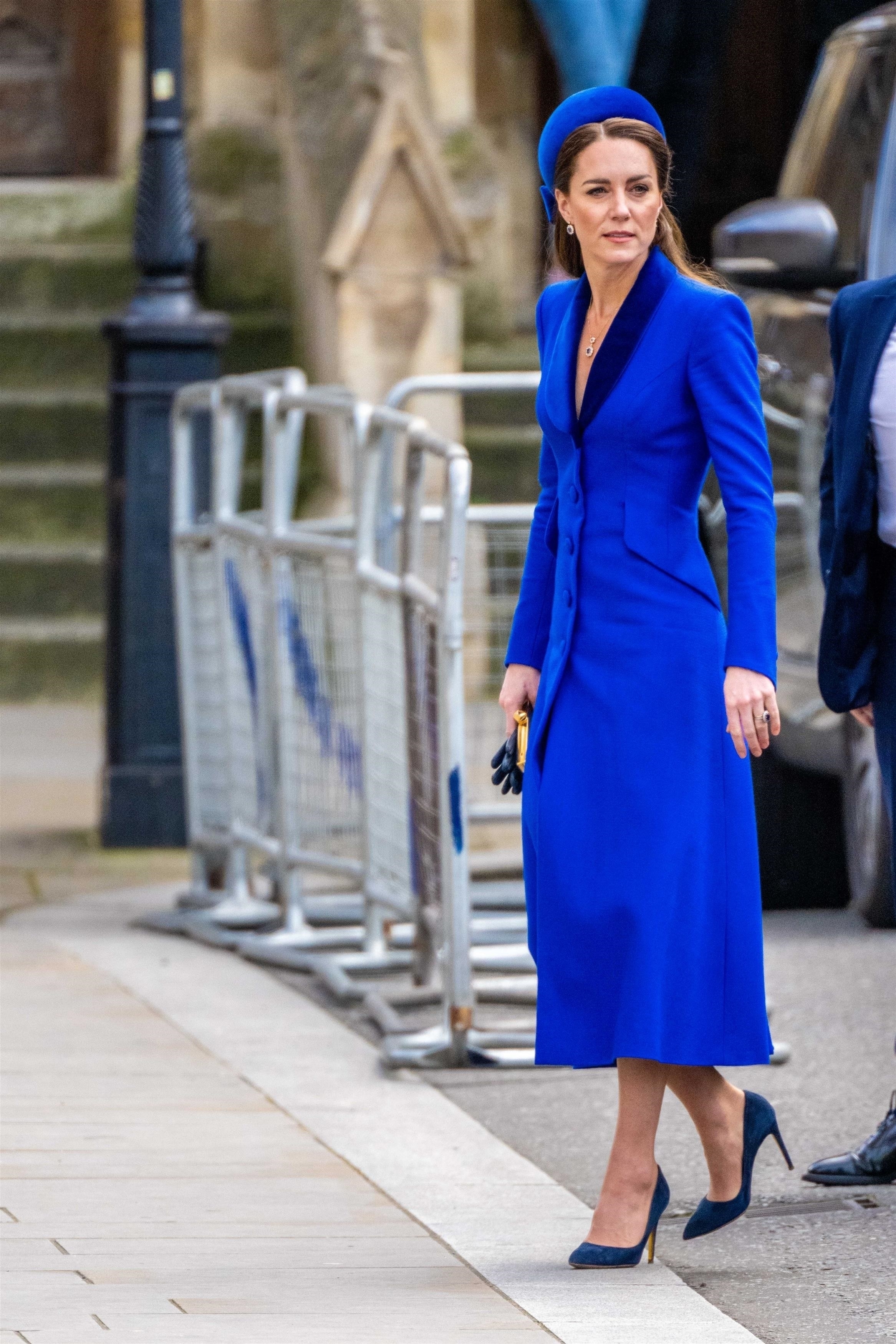 커먼웰스 데이 기념 웨스터민스터 애비에서 예배. 최근 케이트 미들턴은 우크라이나 지지를 보여주고 있어서 블루블루 파란색 착장을 계속 볼 거예요💙 오랜만에 보는 락앤코 필박스 햇과 누가 봐도 캐서린 워커의 코트 원피스