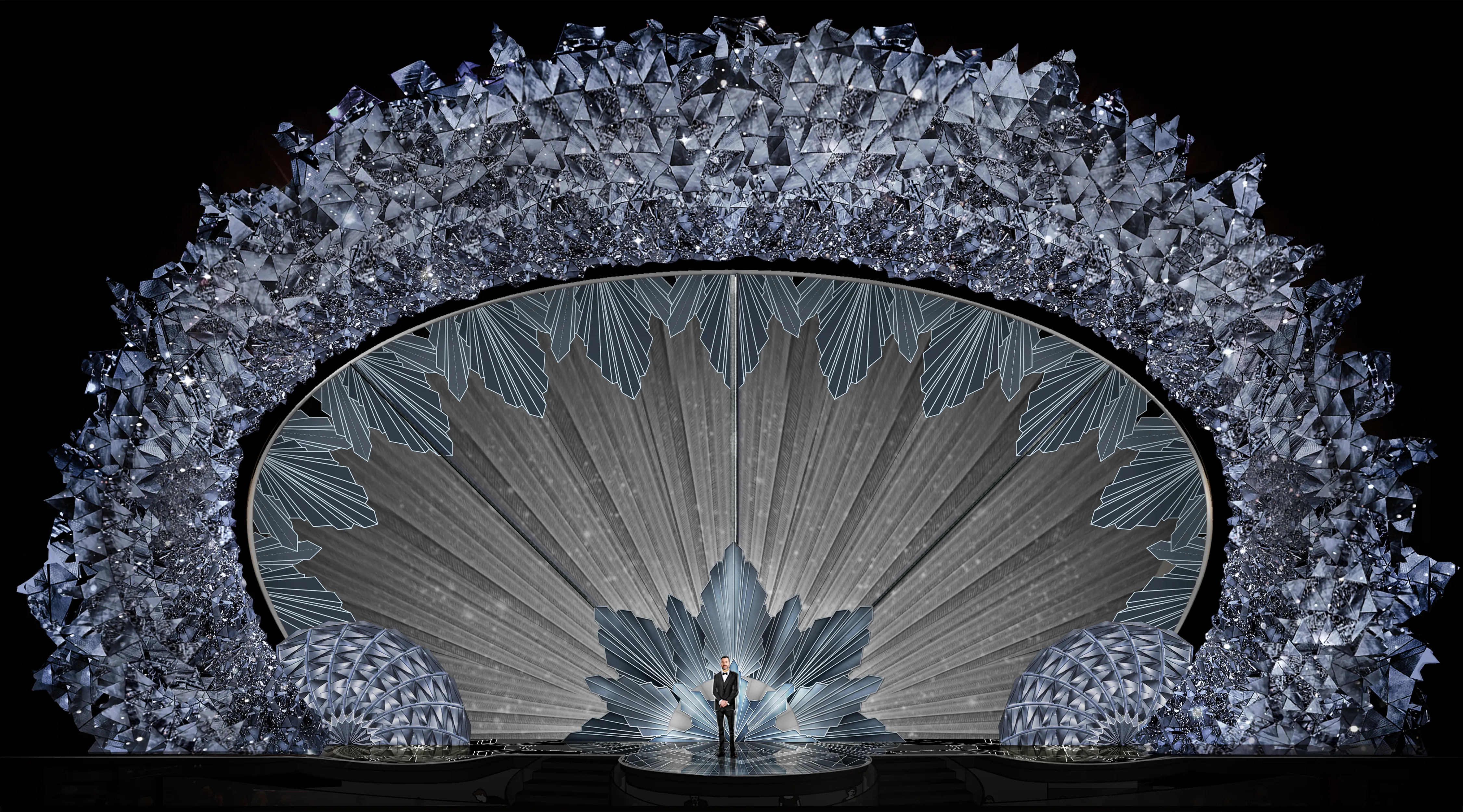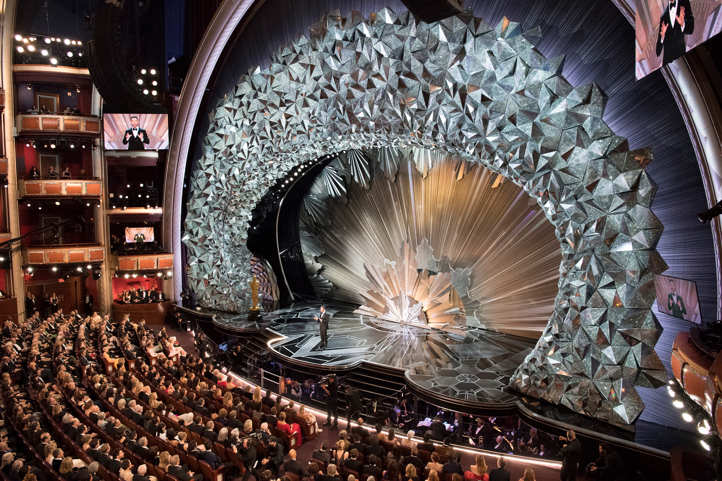 할리우드의 사치스러운 화려함의 극치! 4,500만 개의 스와로브스키 크리스탈로 꾸며진 2018 오스카 세트 디자인. 90주년을 맞은 2018 오스카 무대는 6년 연속 Derek McLane가 다자 인하며 완성하는 데에만 3천 시간이 넘게 걸렸다고.