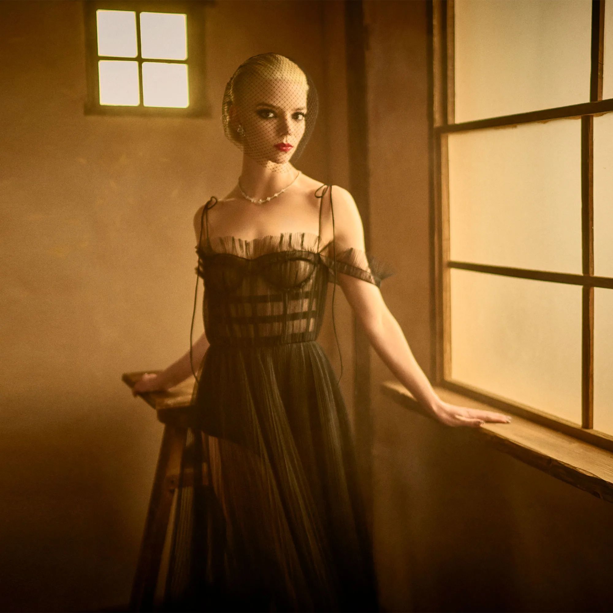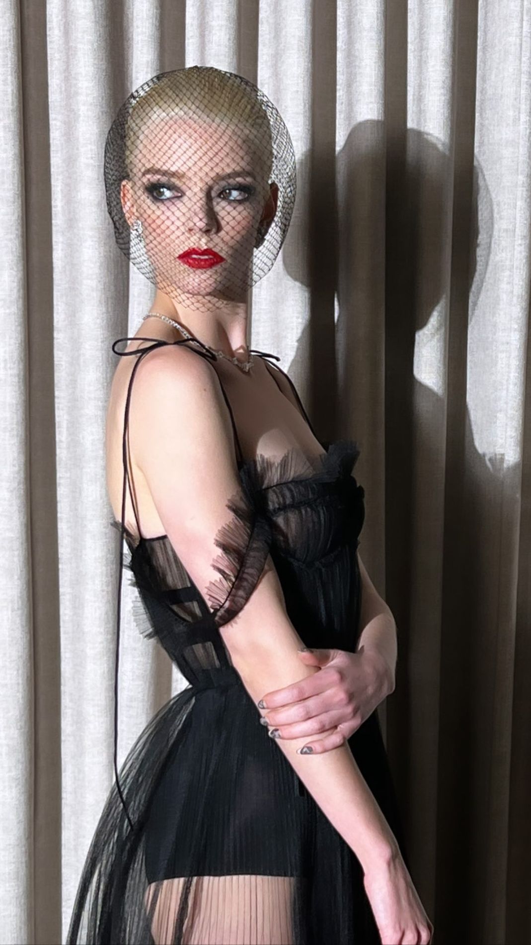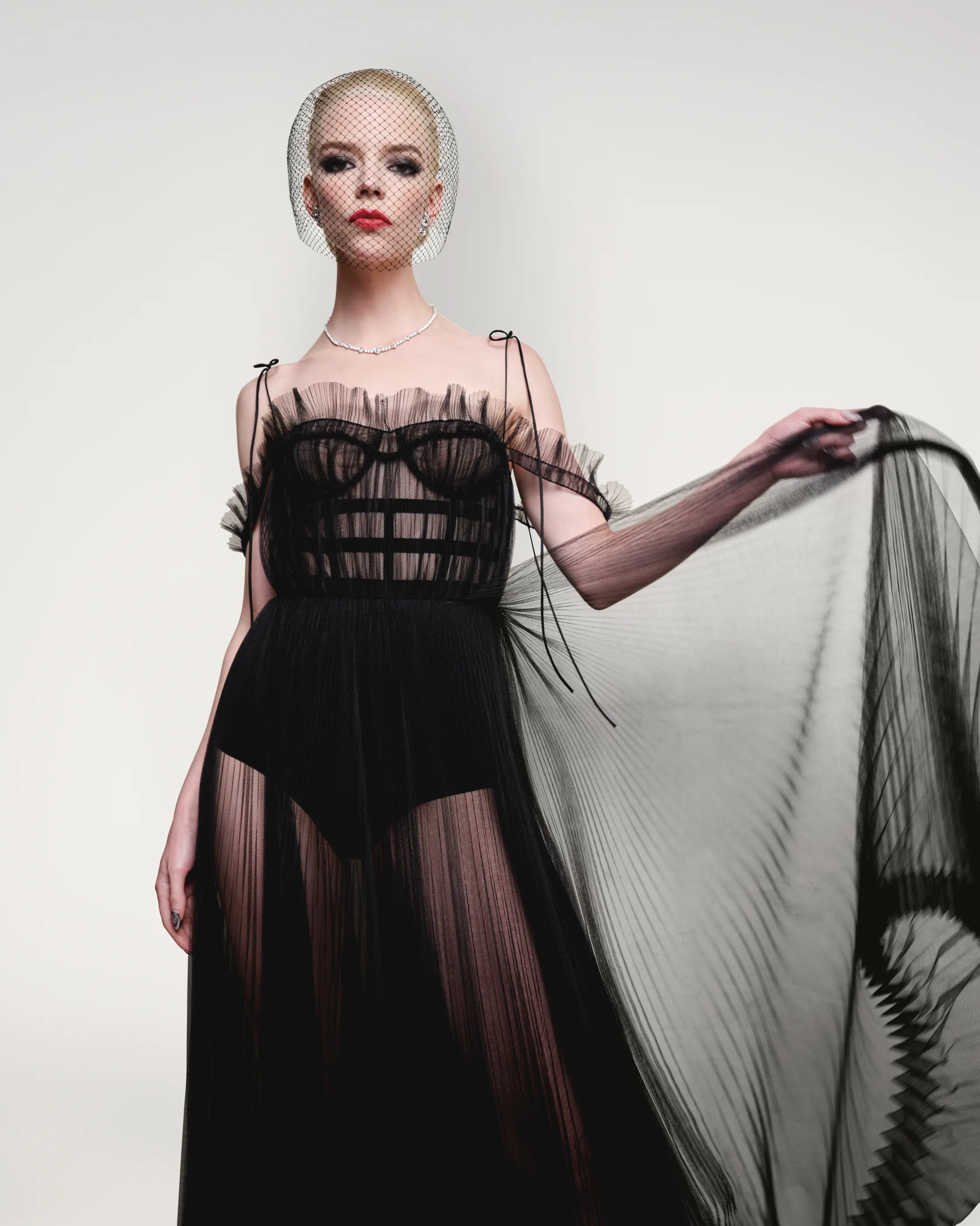 파리, 디올 아틀리에에서 60시간이 걸려 만들었다는 안야 테일러 조이의 블랙 튤 뷔스티에 드레스