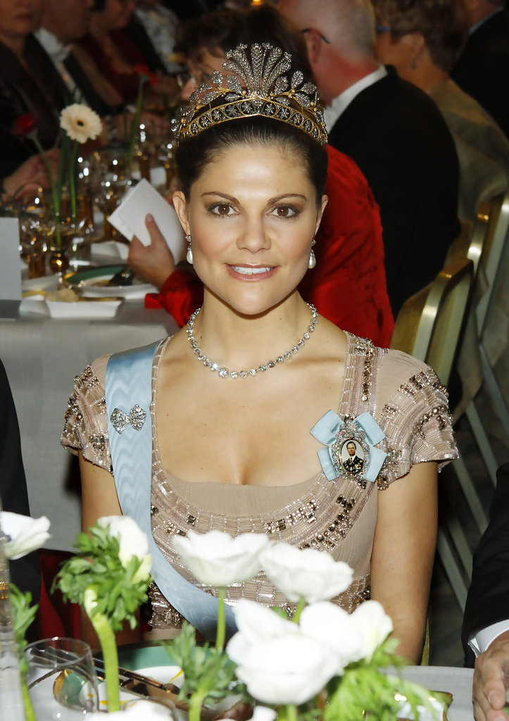 백여 년이 넘게 방치됐던 이 강철 티아라는 1979년 국빈만찬에 참석한 실비아 왕비가 새로이 복원해 쓴 이후로 스웨덴 여성 로열패밀리들에게 자주 쓰이고 있는 티아라 중 하나예요. 특히나 빅토리아 왕세녀가 컷 스틸 티아라를 쓰는 모습을 많이 볼 수 있는데요.