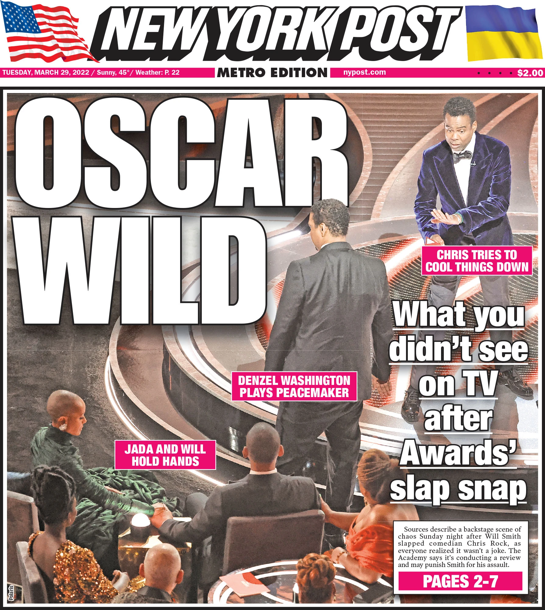 아카데미 시상식 프로듀서 윌 파커(Will Parker)는 윌 스미스가 크리스 락의 뺨을 친 후 크리스 락이 법정 조치를 하겠다고 결정하는 순간 체포할 수 있게 하려고 LA 경찰관들까지 오스카에 출동했다고... 경찰관들은 윌 스미스를 당장이라도 체포할 수 있다며 크리스 락에게 고소하라고 했지만 결국은 법정 조치❌