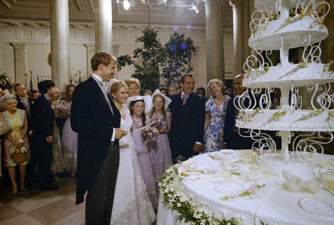 1971년 6월 12일 백악관 로즈 가든에서 열린 리처드 닉슨의 큰딸 트리샤 닉슨(Tricia Nixon)과 에드워드 F. 콕스 결혼식
