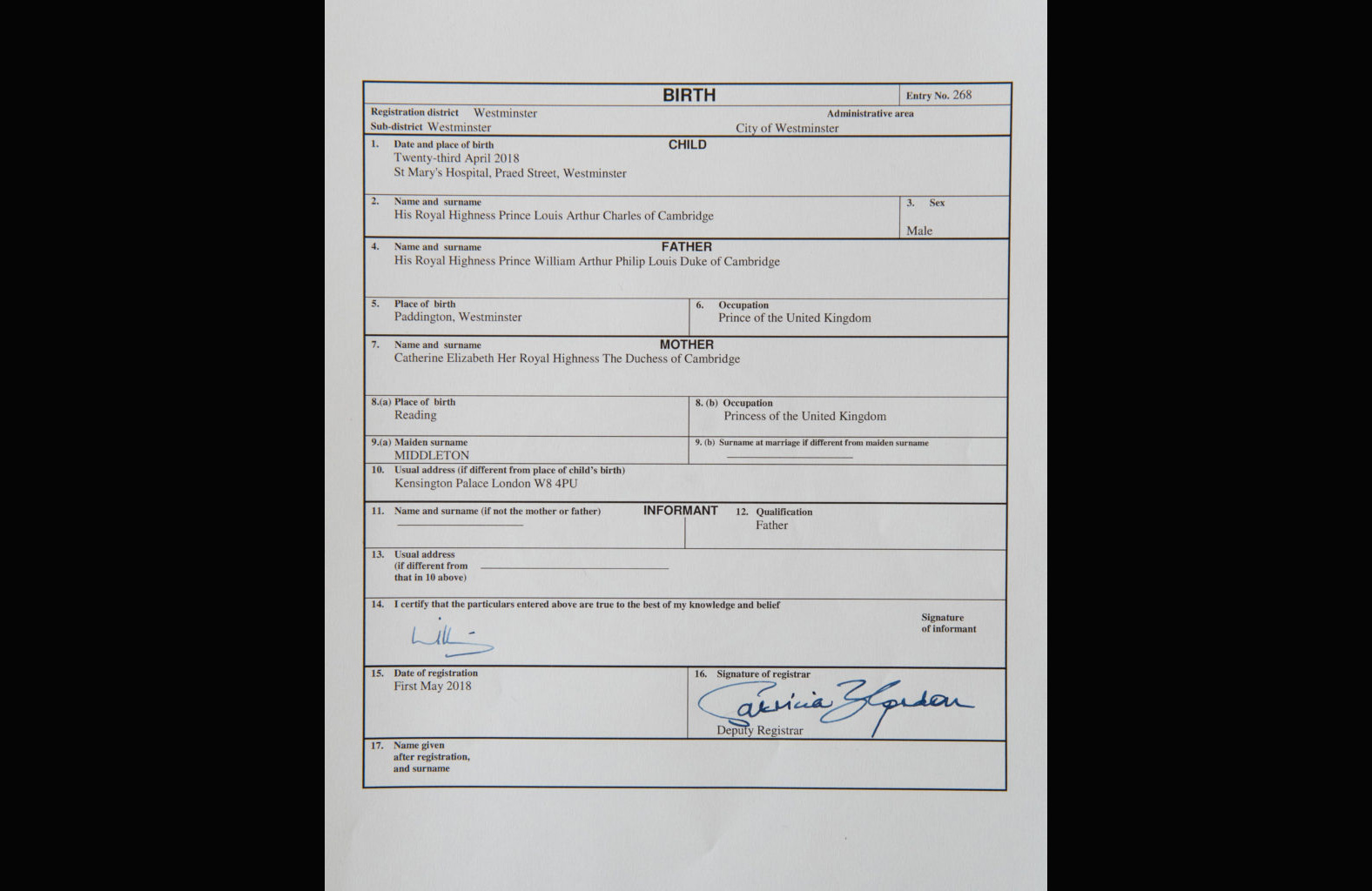 이름 : HRH 루이 아서 찰스