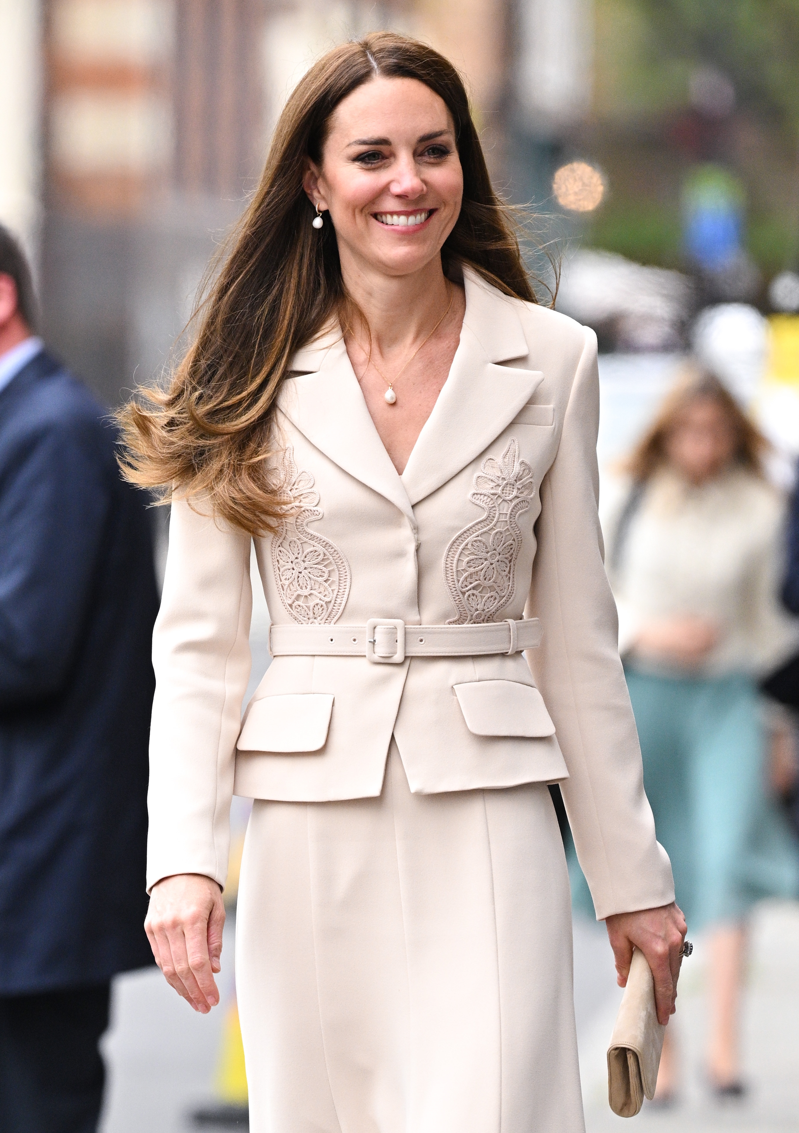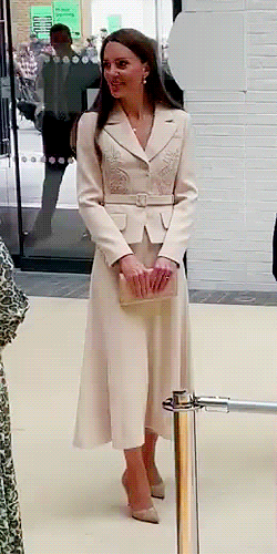 전 케이트 과도한 웨이브보다는 생머리가 훨씬 잘 어울린다고 생각하는데 어떻게 생각하세요? 오늘의 착장은 베이지톤의 Self-Portrait 크레이프 미디 드레스와 케이트 미들턴이 가장 선호하는 명품 슈즈 브랜드인 지안반토 로씨 스웨이드 힐, Emmy London 클러치까지 베이지톤으로 깔맞춤