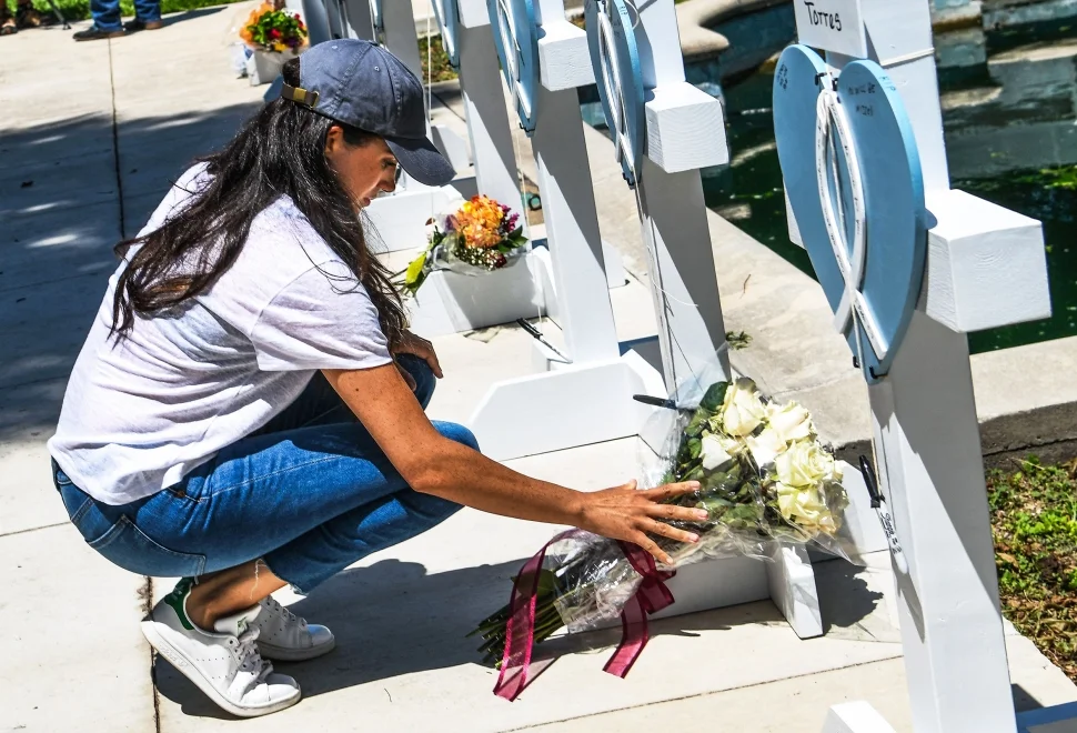 초등학교에서 벌어진 비극적인 사건은 바이든 대통령 등 많은 인물들이 총기 규제 촉구 및 사건에 대한 경찰의 진술을 기다리고 있습니다. 많은 인물 중 서식스 공작부인, 메건 마클은 유밸디 카운티 법정 앞 임시 추모관을 직접 방문했네요.