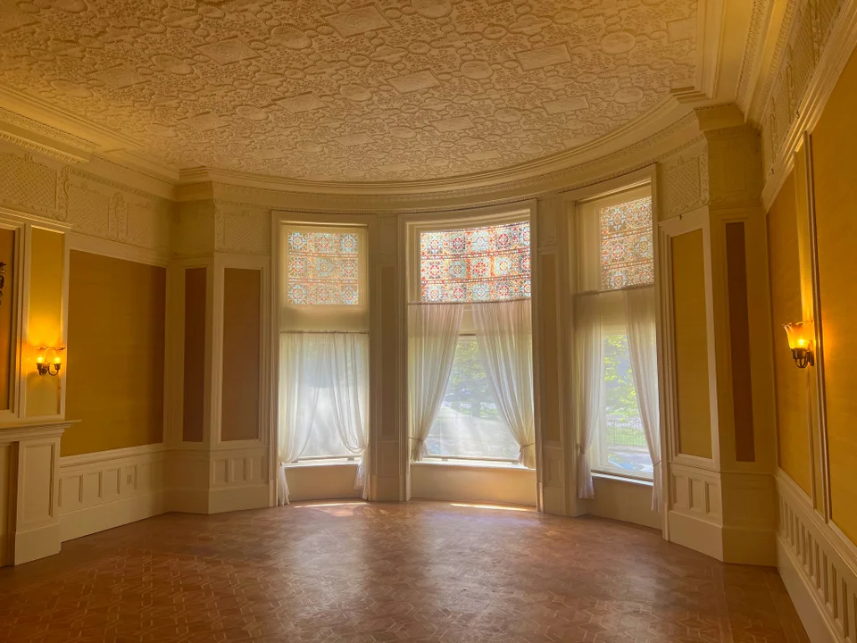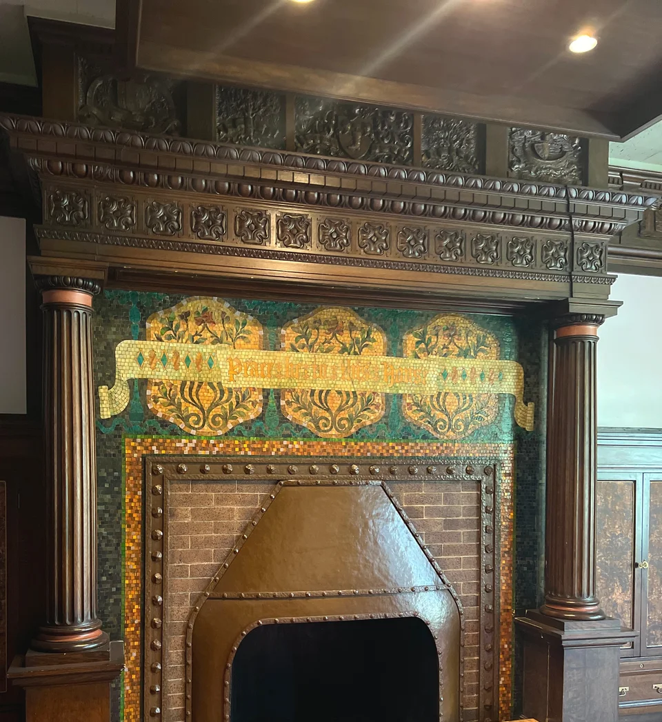이 보스턴의 저택이 역사적 가치를 인정받은 이유는 티파니가 디자인한 모자이크로 저택 외관이 장식됐기 때문이에요! 한때 티파니가 살던 롱 아일랜드 저택 Laurelton Hall 또한 루이스 콤포트 티파니가 디자인했으나 오래전 불타 대부분 소실됐기 때문에 티파니가 디자인한 건물은 에이어 저택이 유일해요.