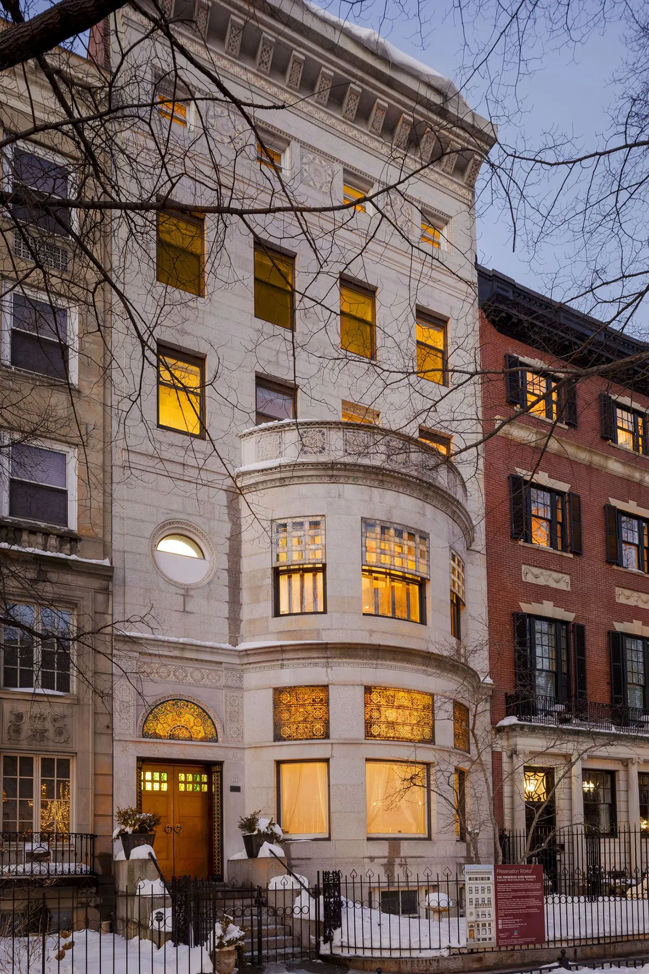 19세기 말과 20세기 초 가장 유명한 미국 디자이너로 평판을 얻은 루이스 컴포트 티파니가 1901년 사업가 Frederick Ayer를 위해 화강암으로 지어진 에이어 맨션은 보스턴의 붉은 벽돌집들과 비교해 확실히 이국적인 분위기에 세련된 디자인을 보여줍니다.