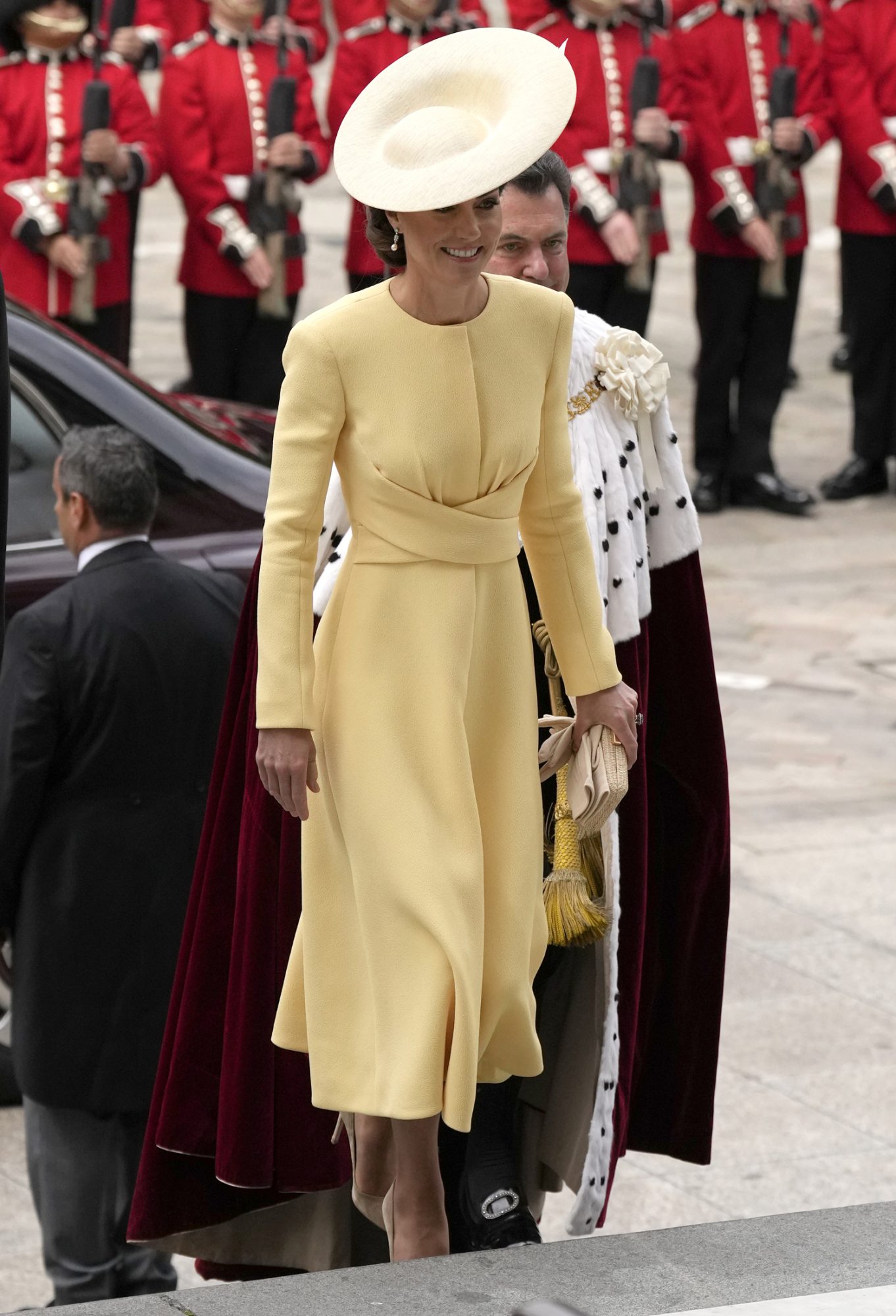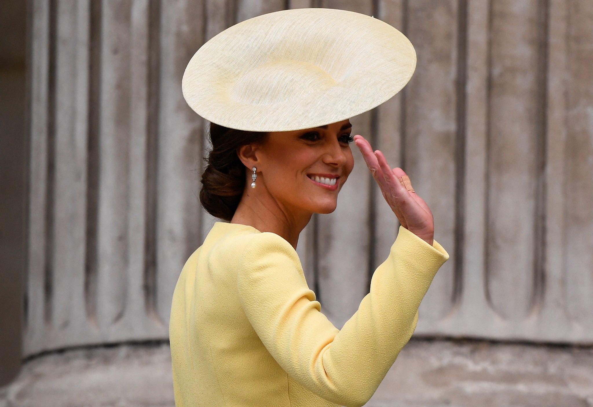 연노랑으로 컨셉잡은 오늘은 케이트 미들턴의 최애 패션 브랜드 에밀리아 윅스테드의 새로 선보인 연노랑색 원피스와 함께 요새 자주 쓰는 브랜드 필립 트레이시의 맞춤 모자를 착용했어요.