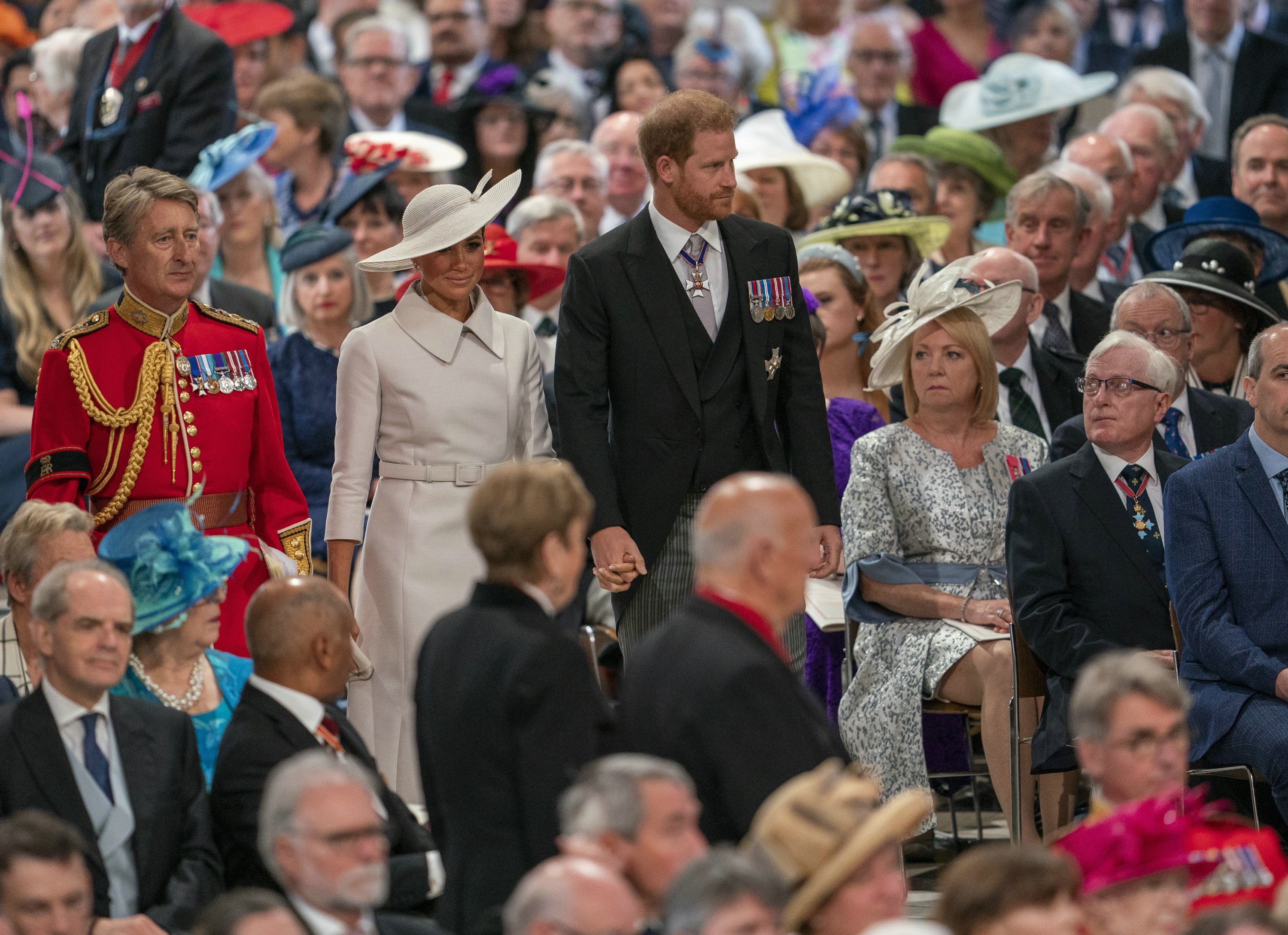 더욱이나 실제로 첫 모습을 보일 수 있었던 세인트 폴 대성당에서 열린 플래티넘 주빌리 기념 추수감사절 예배에서는 들어갈 때, 나올 때 박수도 받았지만 이전 포스팅에서도 말했듯 대성당에 예배하는 로열들을 잠깐 보려 나와있던 시민들이라면 분명 왕실 옹호자, 최소 친왕실 쪽이에요. 그러나 그러한 관중들에게 서식스 공작 부부는 야유도 심하게 받았죠.