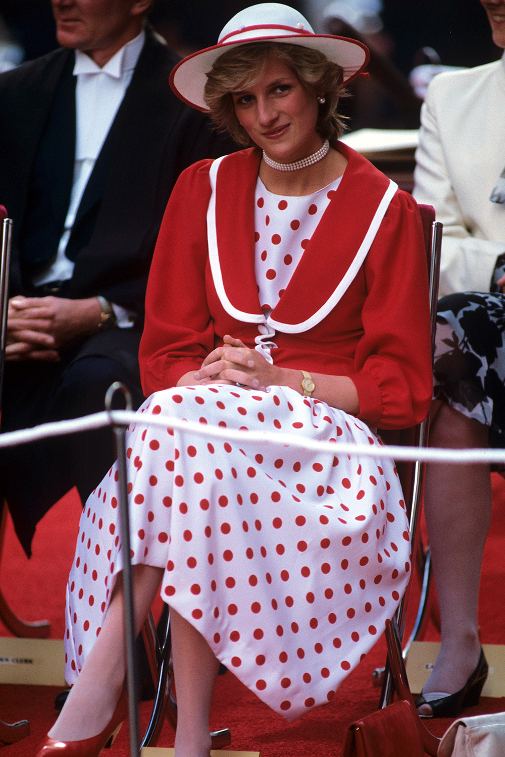 초커를 헤드피스로 착용할 만큼 주얼리를 색다르게 착용하기로 유명한 다이애나는 아빠에게 열여덟살 선물로 받은 진주 초커의 클래스프를 반대로 돌려서 착용하기도 했어요.
