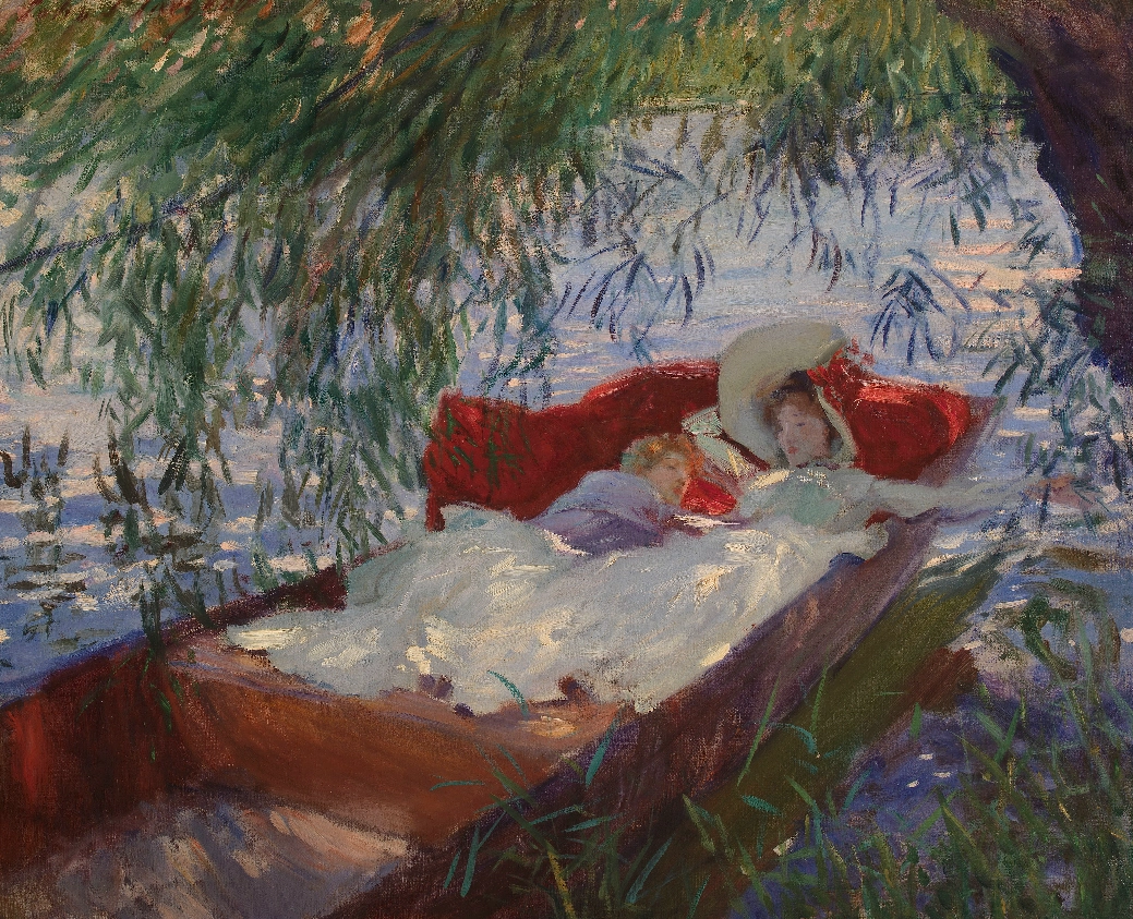 이탈리아 마을의 햇빛이 비치는 정원을 배경으로 동료 예술가 Jane Emmet de Glehn와 그의 연인 월프리드 드 글렌이 그림을 그리는 모습을 그린 이중 초상화