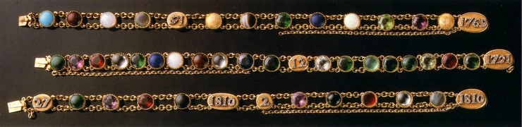 나폴레옹 보나파르트는 쇼메 창립자 Marie-Étienne Nitot에게 어크로스틱 주얼리를 상당수 의뢰했습니다. 지금도 쇼메에서는 AMOUR나 맞춤으로 어크로스틱 브레이슬릿을 주문할 수 있어요. 쇼메 홈페이지