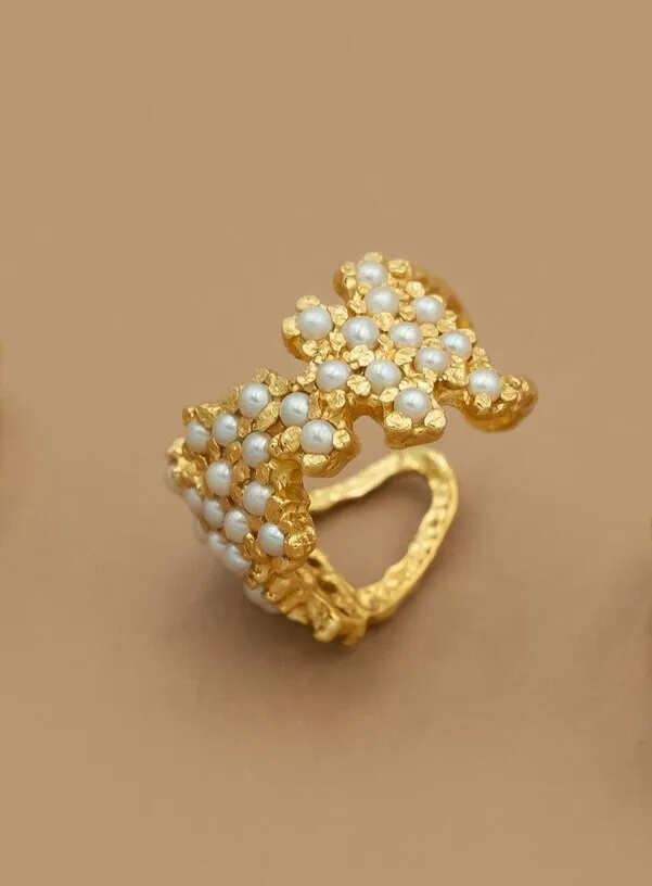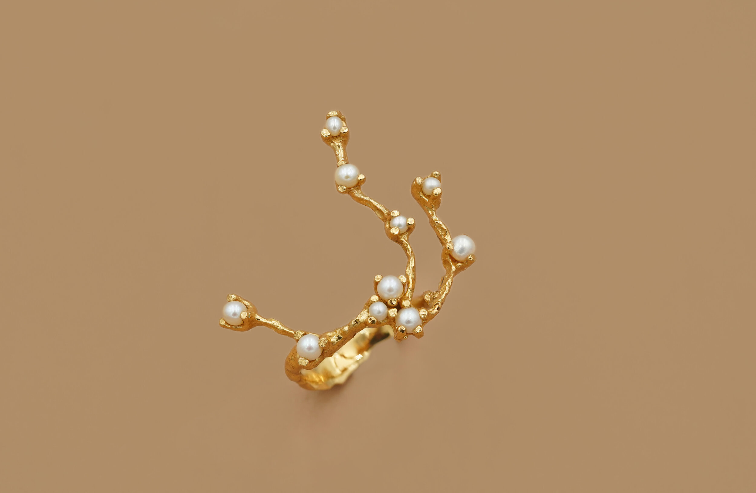 꽃봉아리에서 영감을 받아 디자인한 진주 반지는 오가닉한 질감이 특징으로,