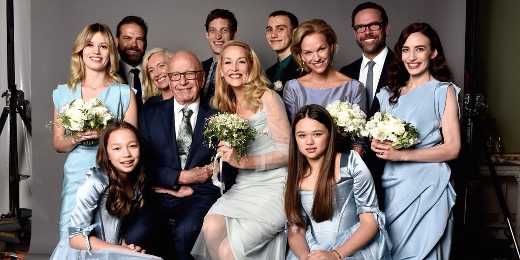 물론 루퍼트 머독이 첫 번째 결혼에서 얻은 엘리자베스, 라클란, 제임스 머독과 중국계 미국인 웬디 덩 사이에서 얻은 딸들 또한 모두 참석했습니다.