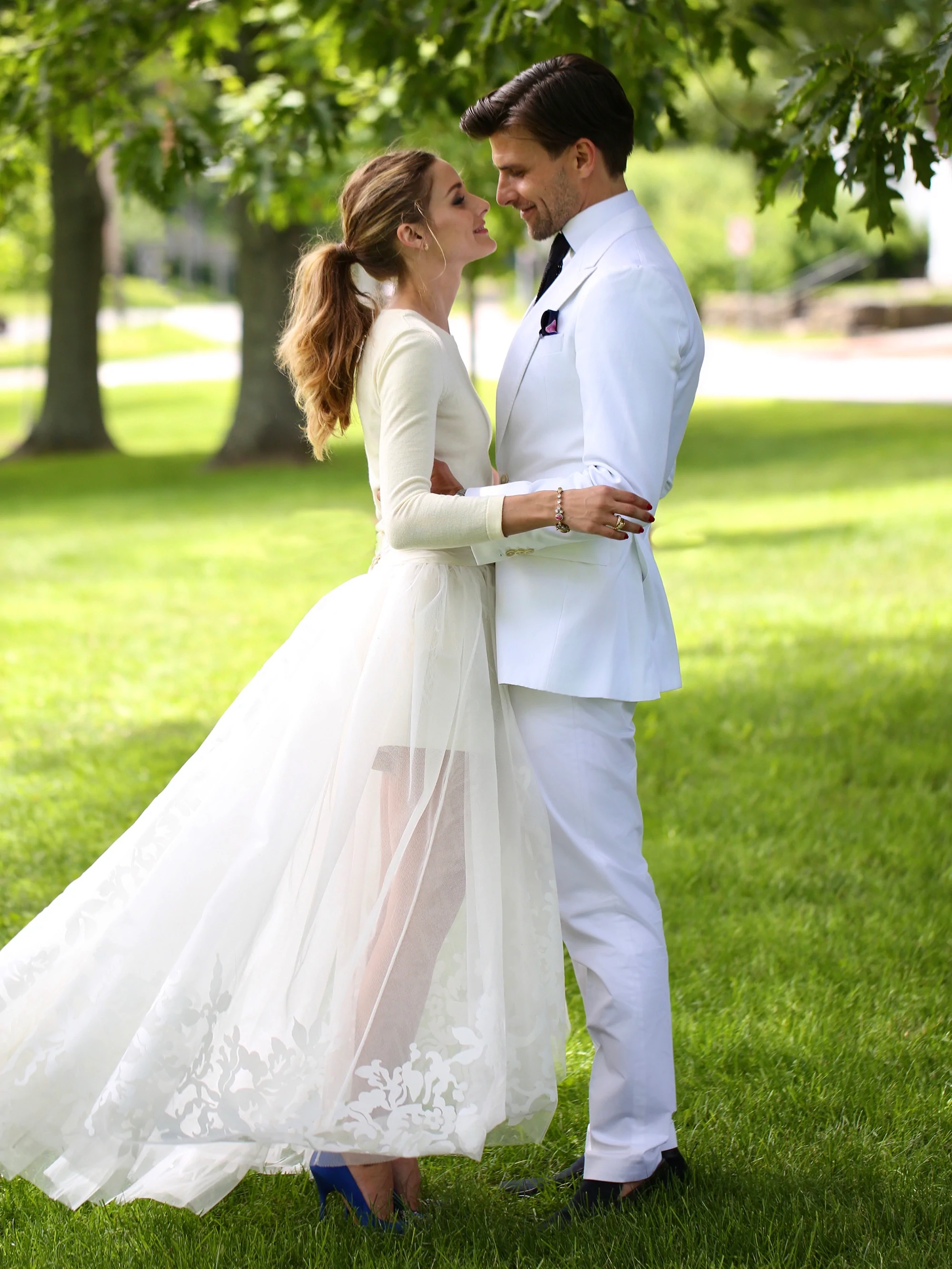 캐롤리나 헤레라 캐시미어 스웨터 드레스와 <섹스 앤 더 시티> 속 캐리가 Mr.Big에게 프러포즈받으며 신었던 마놀로 블라닉의 파란색 'Huebl' 을 착용하고 6년 연애한 독일 출신 모델 요하네스 휴블 Johannes Huebl와 결혼했죠.