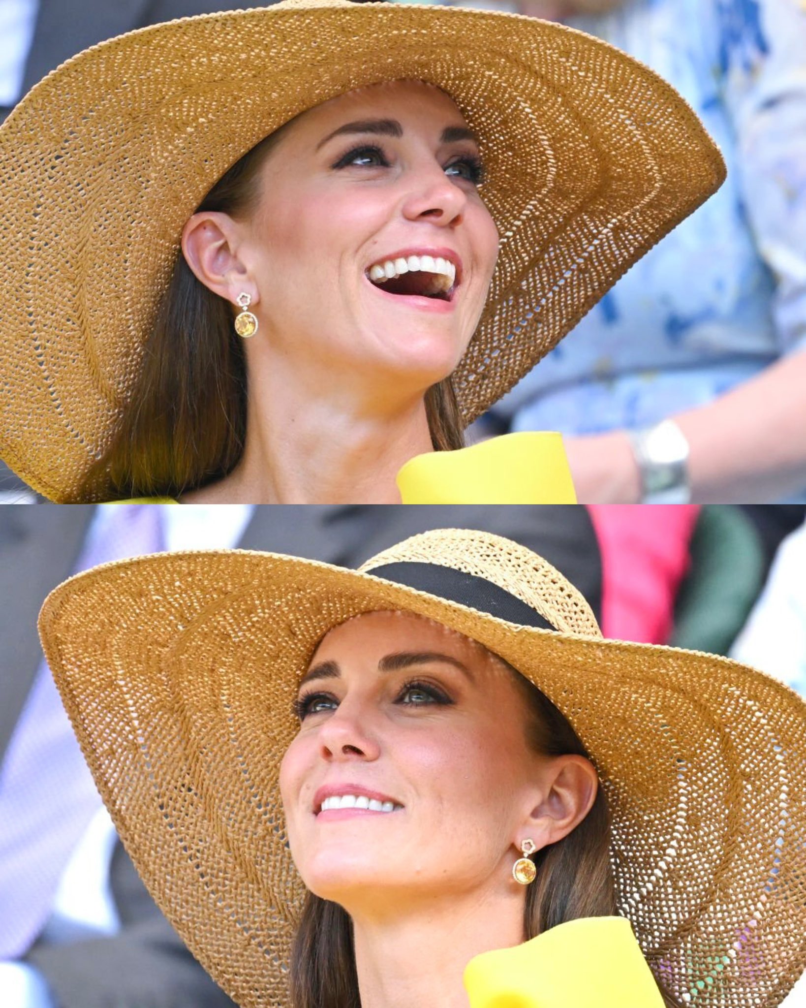 사진 속에서는 생략했지만 이 날 윔블던 결승은 톰 크루즈, 조디 코머, 매기 스미스, 엘리 굴딩 등 많은 테니스 관련 인물들과 셀럽들이 참석했어요. 케이트 미들턴이 웜블던에서 모자를 착용하는 모습은 처음 보는데 기후변화로 워낙 더운 날씨라 L.K.Bennett의 창 넓은 밀짚모자를 썼네요.
