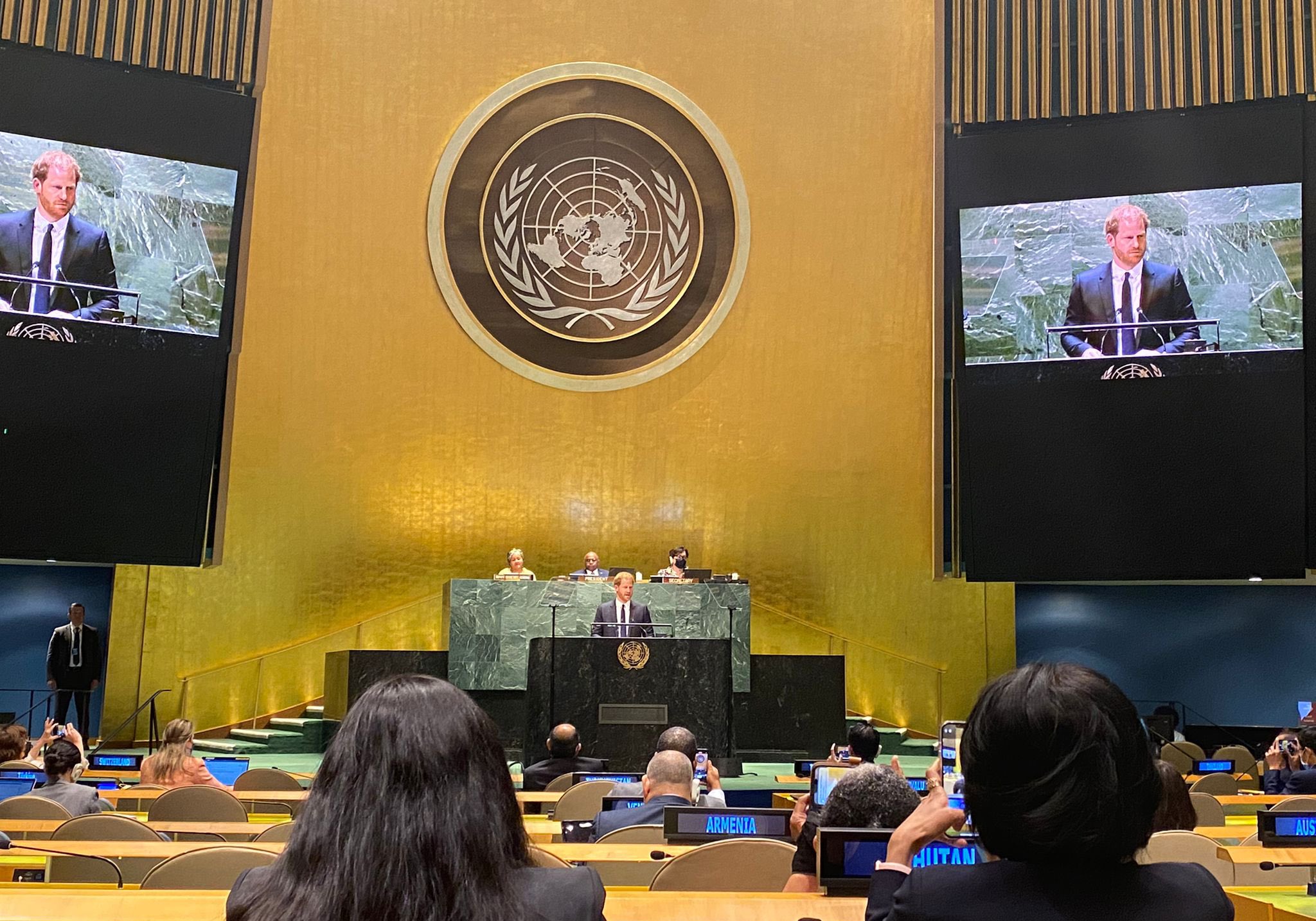 The Sussexes are currently at the @UN #NelsonMandelaDay2022 commemoration in NYC, where Prince Harry will (in 20 minutes) deliver a keynote address. Duchess Meghan has joined him in a supportive role and the couple will later today join meetings with UN ambassadors. pic.twitter.com/wmDQHdXqid