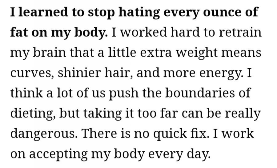자신의 몸 자체를 받아들이고 있다고 밝힌 적 있음