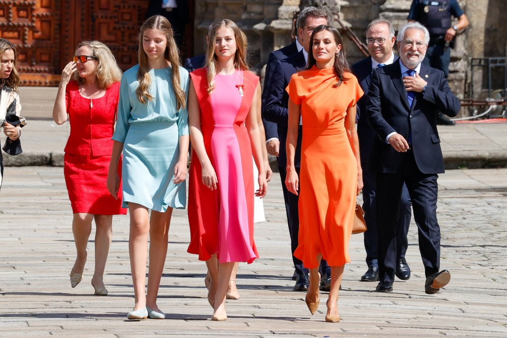 아스투리아스 여공, 레오노르 공주.., 소피아 공주와 함께 산티아고 데 콤포스텔라 대성당에서 Feast Day of Santiago를 기념하기 위해 모인 스페인 왕실 가족