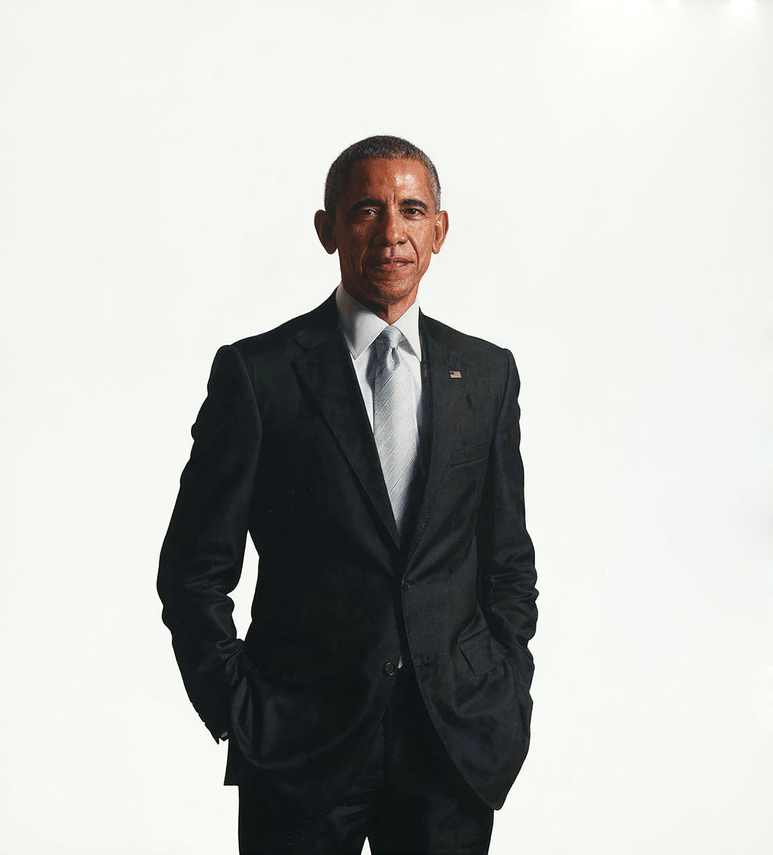 버락 오바마 대통령의 경우, 사진처럼 현실적인 그림 기법으로 알려진 Robert McCurdy가 백악관 공식 초상화를 그렸습니다. 로버트 맥커디는 이미 제프 베조스, 넬슨 만델라의 초상화를 그린 것으로 유명한데요. 오바마 대통령 역시 하얀 바탕에 정면을 응시하는 그의 그림의 특징을 살렸습니다.