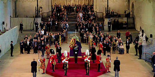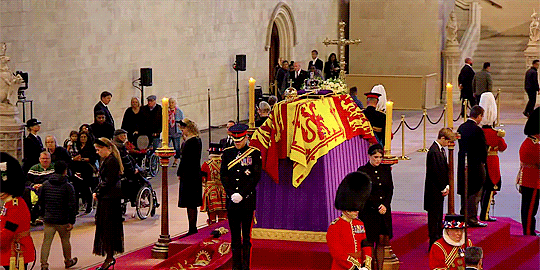 9월 19일 국장으로 치러질 장례식 전까지 일반 방문객들의 조문 행렬을 받을 엘리자베스 2세 장례식 전까지 웨스트민스터 홀에 안치될 관 위에는 영국 군주를 상징하는 Imperial State Crown, 보주, 왕