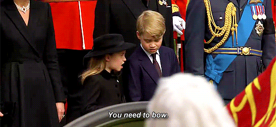 장례식에서 샬롯 공주도 울었다는 이야기가 있던데.. 샬롯이 장례식 때 오빠 조지 왕자보다 훨씬 의젓한 모습이었어서 순간 눈 만지는 중이었을 거 같아요!