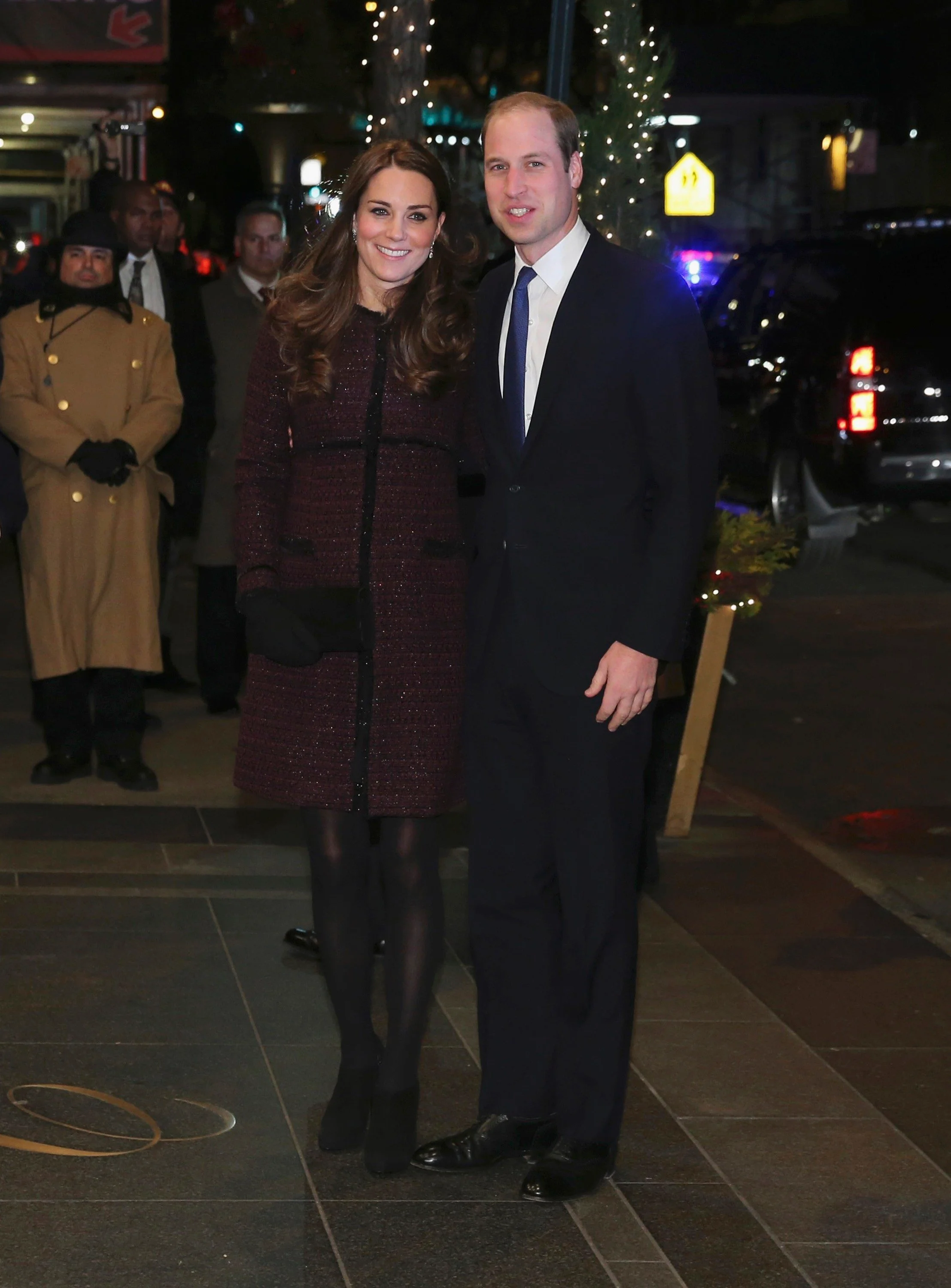 빠르게 옷을 갈아입은..윌리엄도 아내의 스타일에 맞추어 넥타이 바꿈 케이트 미들턴의 보스턴에서의 첫 번째 코트 선택은 알렉산더 맥퀸! 그 안에는 영국을 대표하는 패션 브랜드인 버버리의 타탄 드레스를..